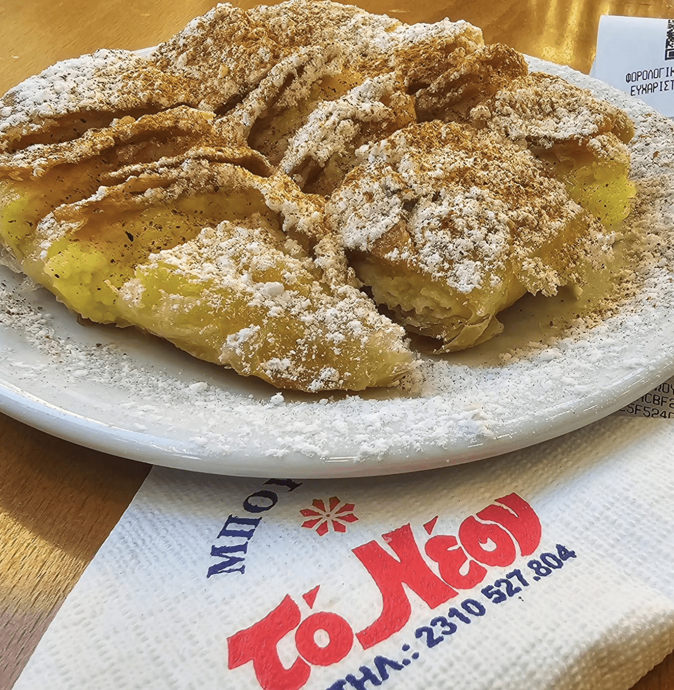 With roots dating back to 1970 in the heart of Thessaloniki, To Neon is a family-run institution now in its third generation of serving authentic pies and bougatsa. Everything here is handmade and prepared from the early morning hours, giving you that truly authentic taste that’s remained unchanged for over 50 years.