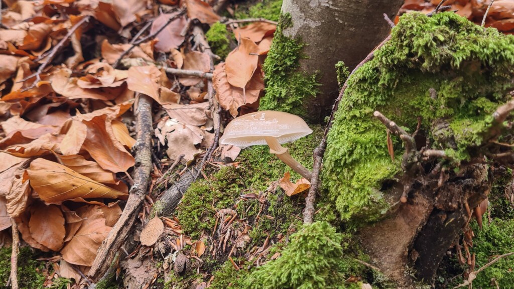 Chortiatis is full of small treasures for anyone who pays attention. We noticed an owl resting quietly on a branch, so well camouflaged it felt like part of the tree. Mushrooms appear everywhere under the leaves in different colours and shapes, while chestnut and walnut trees rise above the path.