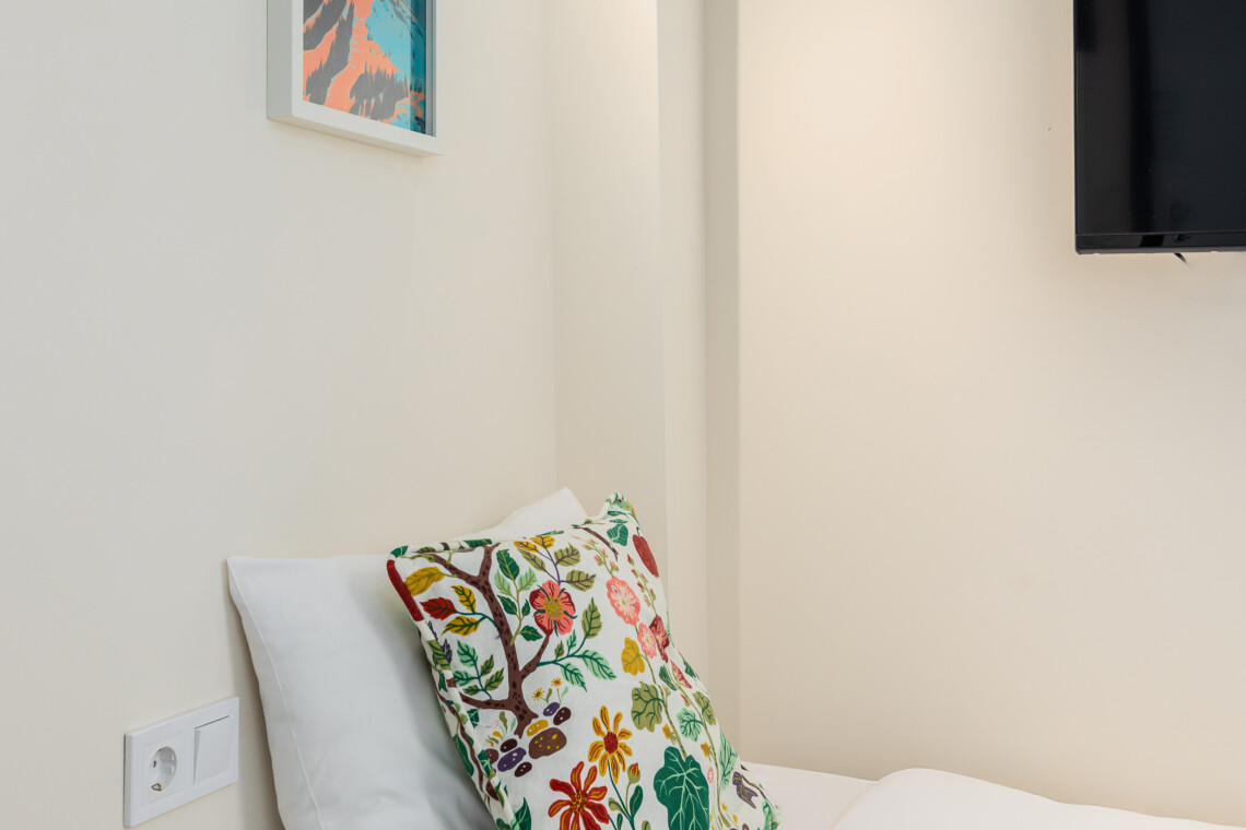 - Relaxing Balcony: Start your mornings with a coffee on the small balcony, furnished with outdoor seating, overlooking a quiet street.