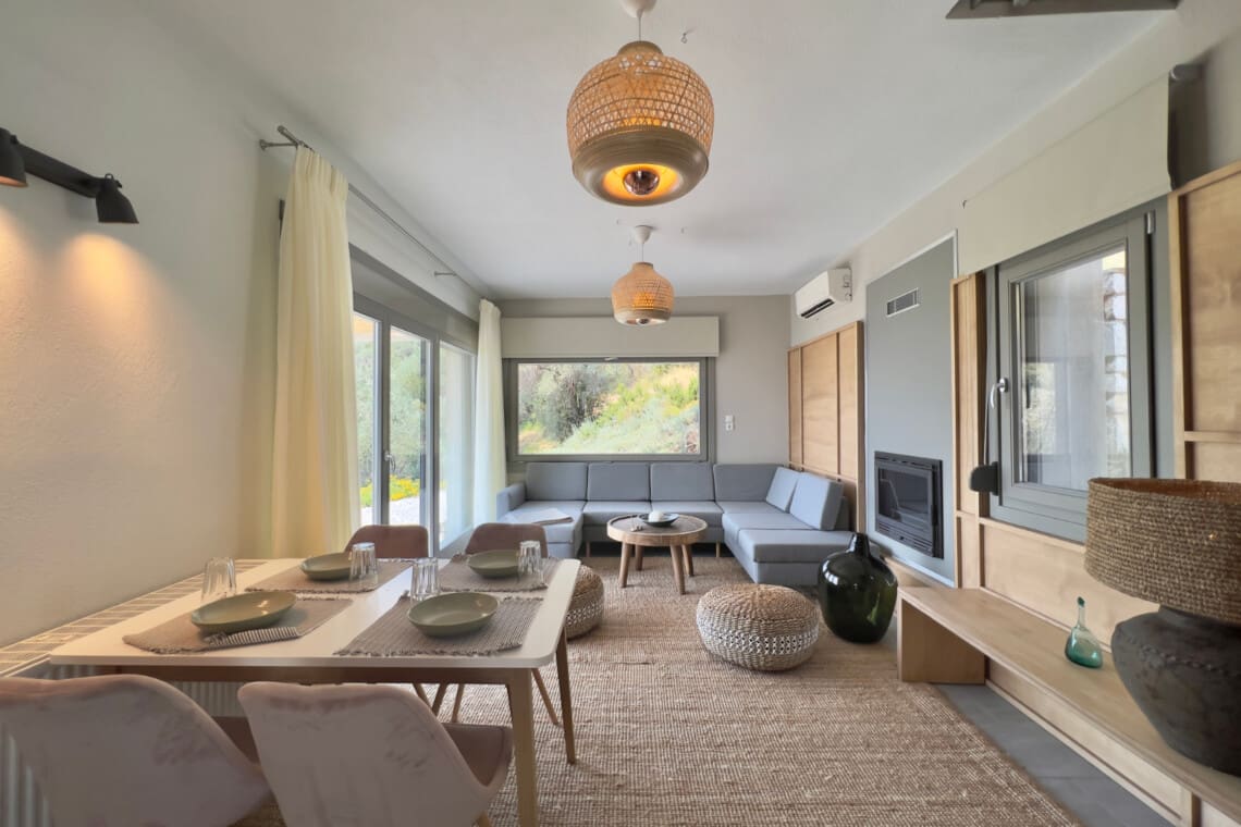 Η βίλα μας διαθέτει ένα όμορφα διακοσμημένο σαλόνι, παρέχοντας τον ιδανικό χώρο για να αποφορτιστείτε μετά από μια μέρα περιπέτειας. Είτε επιλέξετε να χαλαρώσετε στον καναπέ και να παρακολουθήσετε μια ταινία είτε να μαζευτείτε γύρω από το τραπέζι για ένα νόστιμο γεύμα, το σαλόνι μας έχει σχεδιαστεί για να είναι οτο κέντρο των δραστηριοτήτων σας.