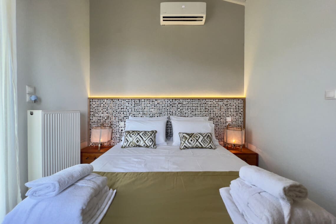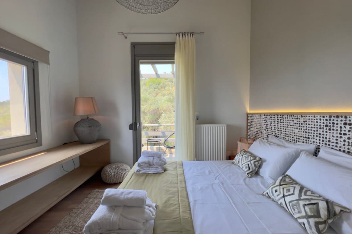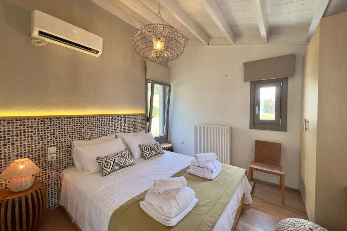 Καθώς μπαίνετε στην υπέροχη βίλα μας, θα σας υποδεχτεί η χαλαρή ατμόσφαιρα και η μοντέρνα επίπλωση που δημιουργούν έναν ζεστό και φιλόξενο χώρο. Με δύο ευρύχωρα υπνοδωμάτια, το καθένα με ένα πολυτελές Queen size κρεβάτι, εσείς και τα αγαπημένα σας πρόσωπα θα απολαύσετε έναν ξεκούραστο βραδινό ύπνο, διασφαλίζοντας ότι θα ξυπνήσετε ανανεωμένοι και έτοιμοι να εξερευνήσετε όλα όσα έχει να προσφέρει η Σκιάθος.