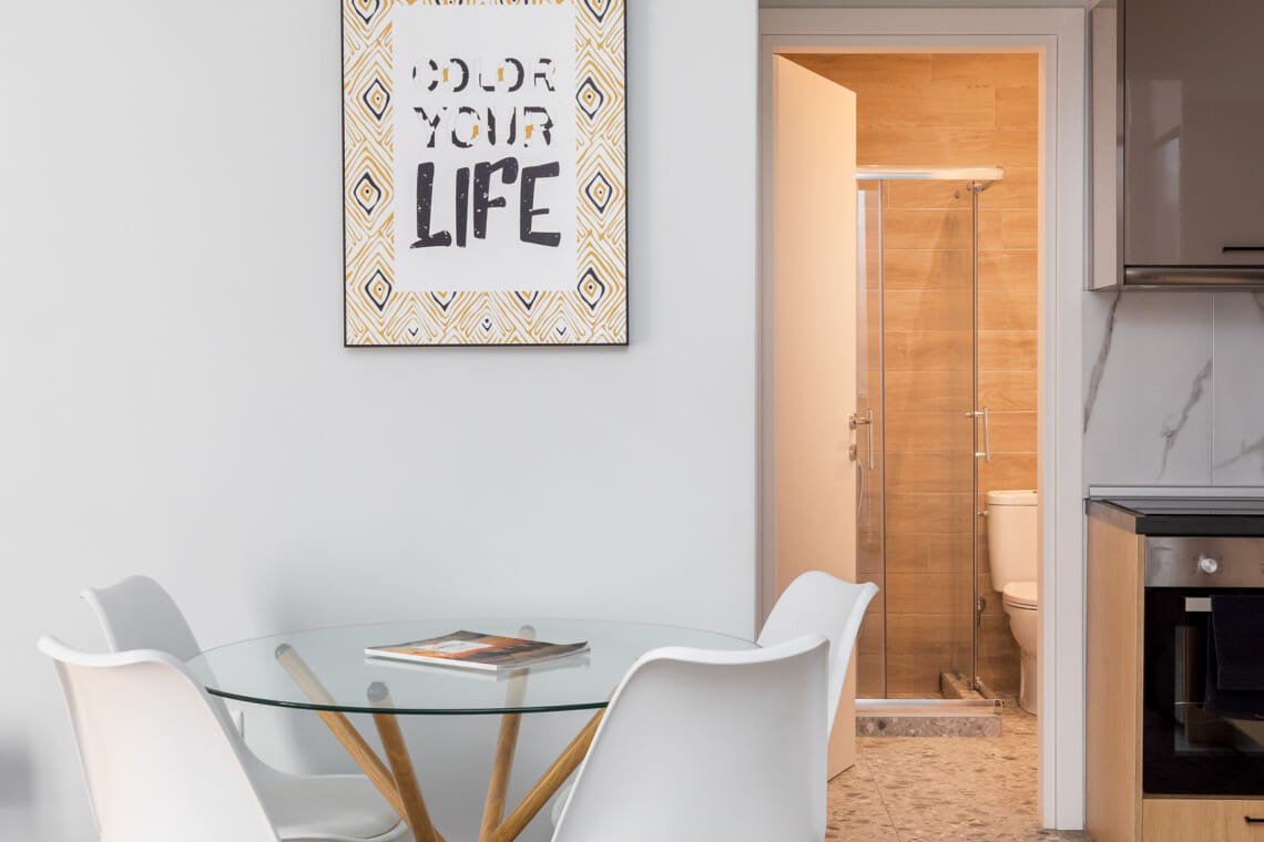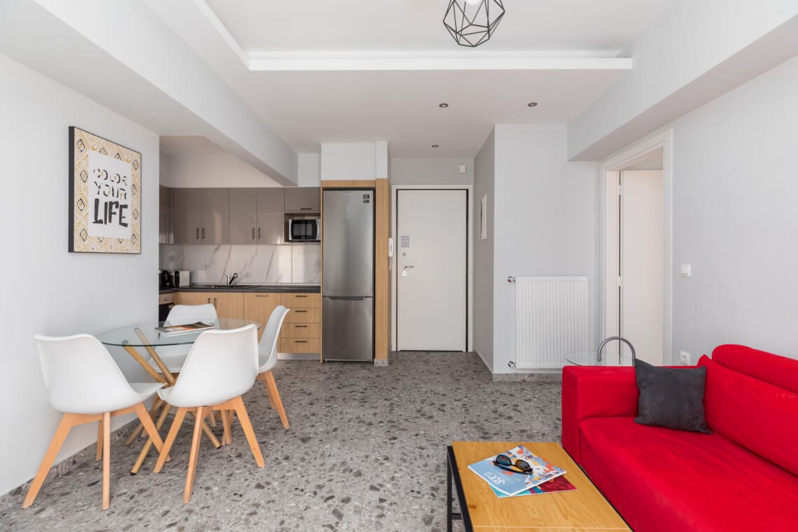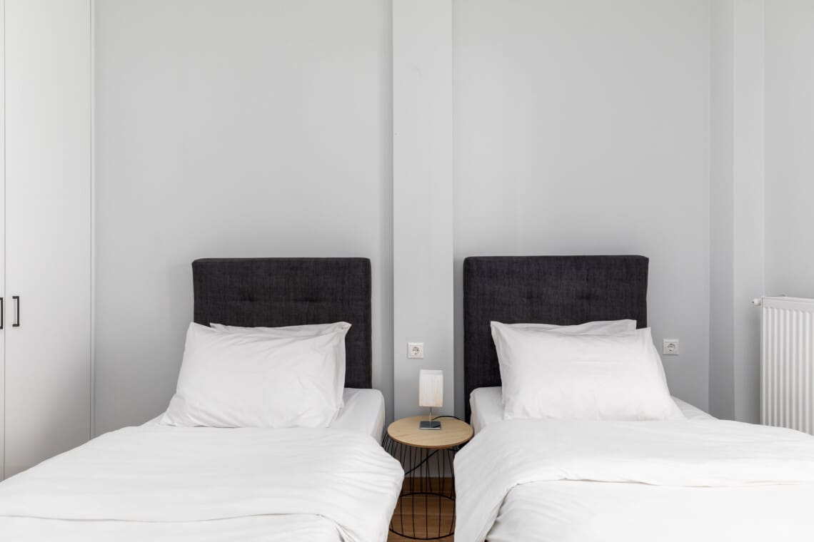 Κατά την είσοδό τους, οι επισκέπτες θα εντυπωσιαστούν από την κομψή και μοντέρνα αίσθηση του χώρου. Στο διαμέρισμα υπάρχουν 2 υπνοδωμάτια, με το κύριο υπνοδωμάτιο να διαθέτει ένα αναπαυτικό Queen size κρεβάτι και το δεύτερο υπνοδωμάτιο δύο άνετα μονά κρεβάτια. Αυτή η ρύθμιση είναι ιδανική για οικογένειες με παιδιά ή παρέες που ταξιδεύουν μαζί.