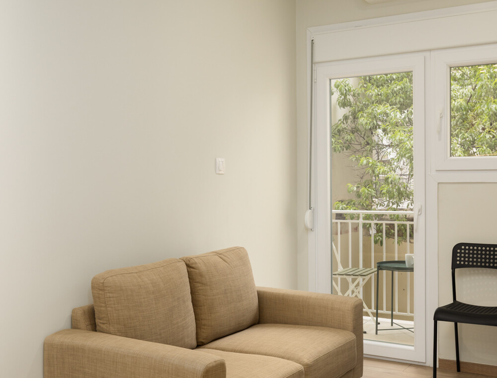 Αυτό το διαμέρισμα ενός υπνοδωματίου 25 τ.μ. στο Celine Volos by halu! είναι σχεδιασμένο για ταξιδιώτες που θέλουν άνεση και ανεξαρτησία. Διαθέτει διπλό κρεβάτι με απαλό λευκά είδη, άνετο καναπέ και Smart TV, ιδανικά για χαλάρωση μετά από μια ημέρα στην πόλη.