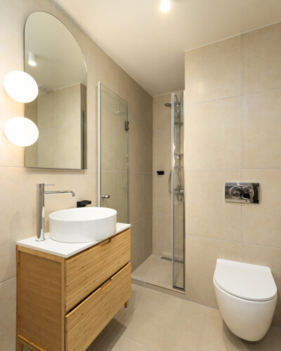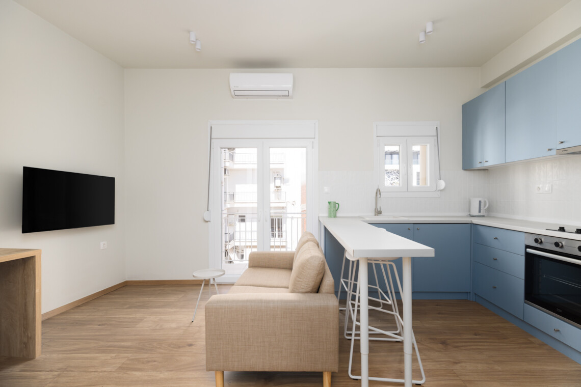 Το διαμέρισμα είναι φωτεινό, λειτουργικό και επιπλωμένο με προσοχή, με ανοιχτές ξύλινες αποχρώσεις και μοντέρνα απλότητα. Ο κλιματισμός εξασφαλίζει άνεση όλο τον χρόνο, ενώ οι επισκέπτες έχουν επίσης πρόσβαση σε κοινόχρηστο πλυντήριο ρούχων στο κτίριο, κάτι που το καθιστά ιδανικό για μεγαλύτερες διαμονές.