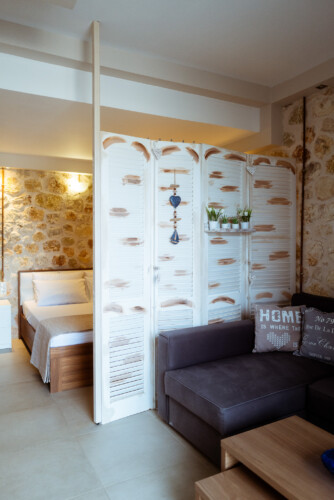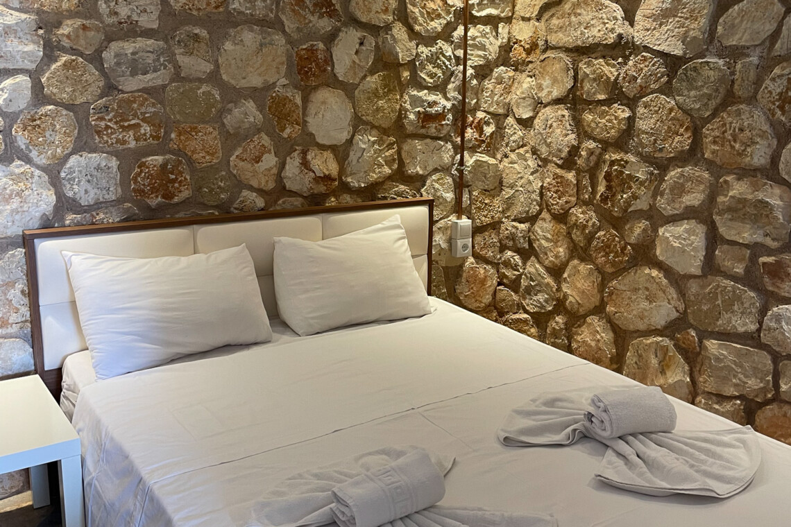 The Triton Suite is a beautifully styled 38 m² retreat that harmoniously blends the raw charm of natural stone with the elegance of modern decor. Designed to offer both comfort and aesthetic pleasure, this suite creates the perfect setting for a peaceful and rejuvenating stay in Sivota.