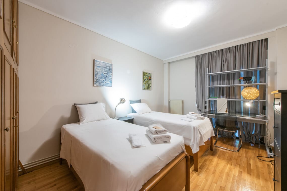 Διαθέτει 3 ευρύχωρα υπνοδωμάτια. Tα δύο από αυτά είναι εξοπλισμένα με άνετα κρεβάτια king-size, ενώ το τρίτο έχει δύο μονά κρεβάτια. Ιδανικό για παρέες φίλων ή οικογένειες. Κάθε υπνοδωμάτιο είναι εξοπλισμένο με επιφάνεια εργασίας, ιδανικό για επαγγελματίες ταξιδιώτες που θέλουν να δημιουργήσουν μια βάση και να εργάζονται από απόσταση.