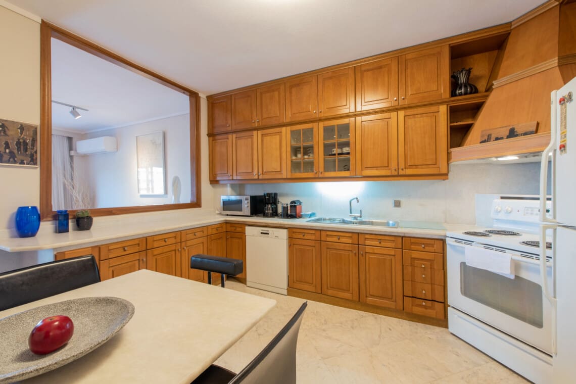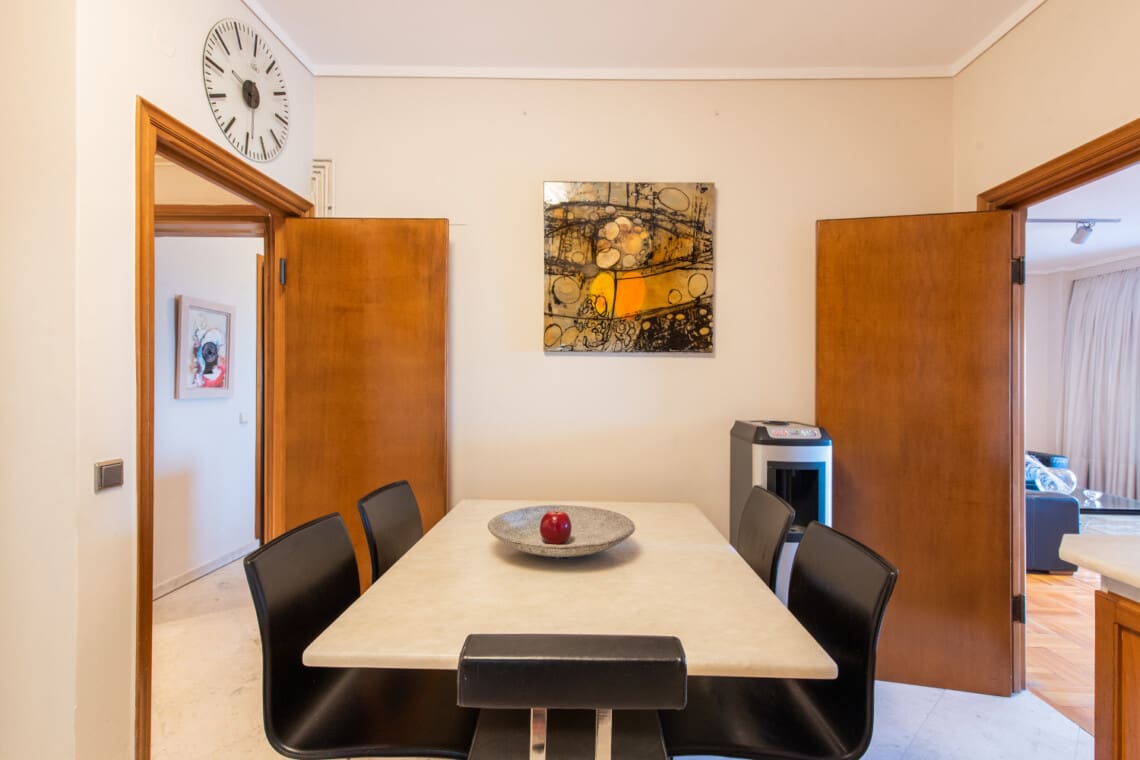 Μπείτε στο διαμέρισμά μας και ζήστε τον τέλειο συνδυασμό κομψότητας και άνεσης. Το ευρύχωρο σαλόνι μας συνδέεται με την τραπεζαρία, δημιουργώντας την τέλεια ατμόσφαιρα για χαλάρωση ή διασκέδαση. Ετοιμάστε τα αγαπημένα σας γεύματα στην πλήρως εξοπλισμένη κουζίνα μας, με σύγχρονες ηλεκτρικές συσκευές, είδη μαγειρικής και μια όμορφη πινελιά που προσθέτει στην κομψότητα του δωματίου.