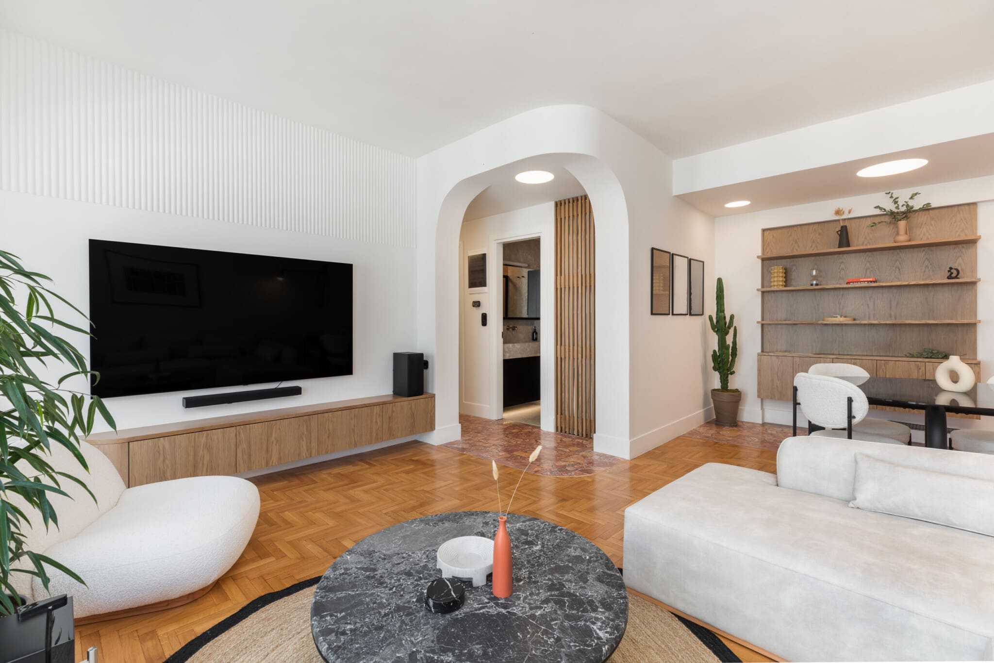 Our apartment boasts a unique and calming aesthetic, featuring warm colors and interesting architectural finishes. Every aspect has been thoughtfully curated with comfortable and peaceful living in mind.