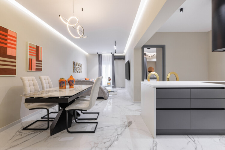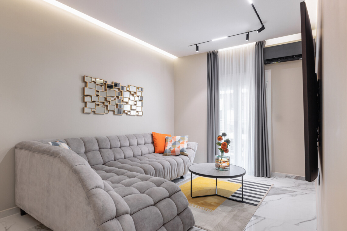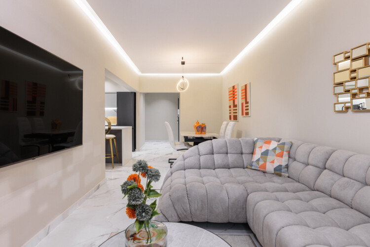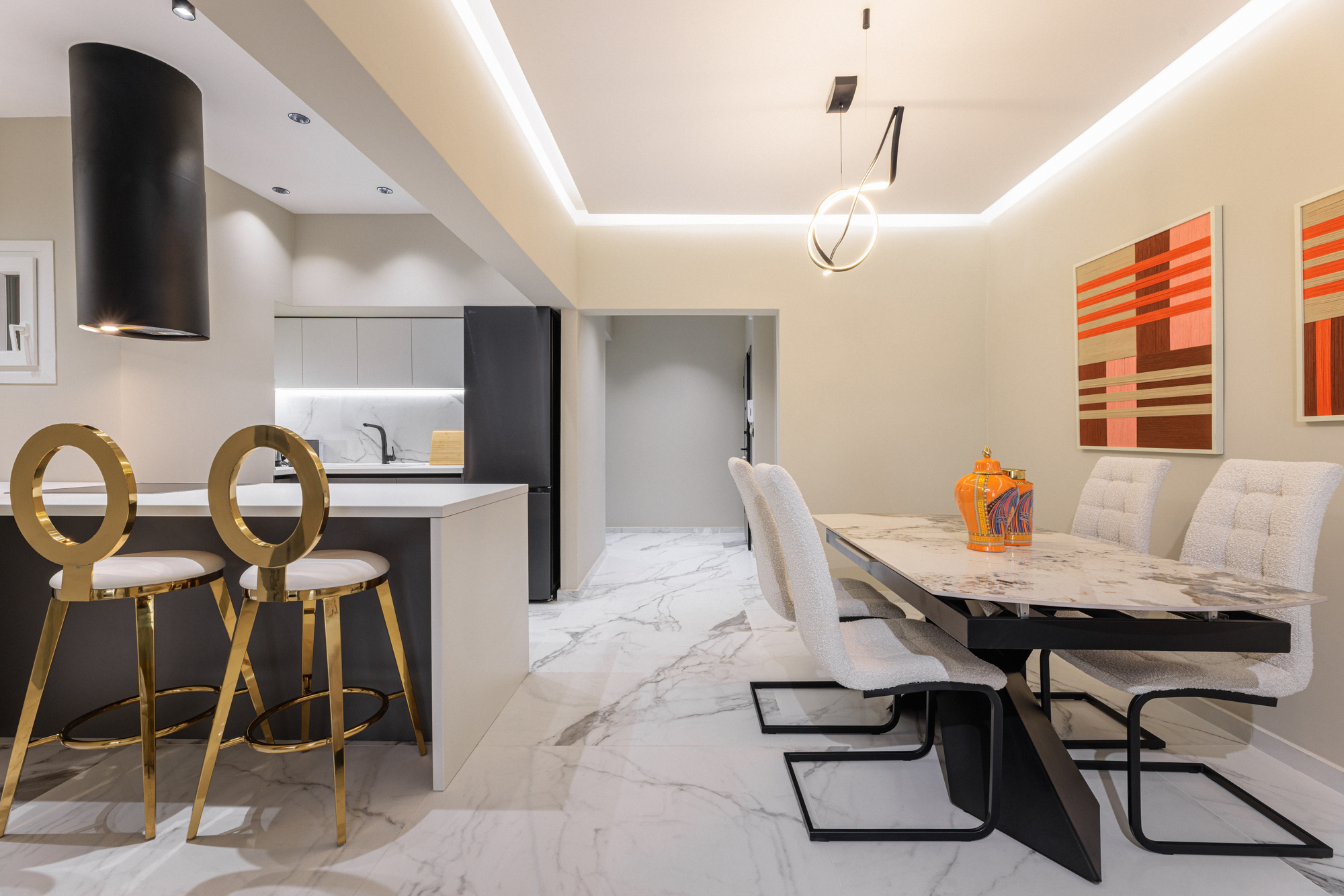 Το Dry Martini είναι ένα ευρύχωρο διαμέρισμα 80m², σχεδιασμένο για επισκέπτες που εκτιμούν το στυλ και την άνεση. Ο ενιαίος χώρος καθιστικού διαθέτει άνετο καναπέ, κομψή τραπεζαρία και Smart TV 65 ιντσών για βραδιές ταινιών ή τις αγαπημένες σας σειρές. Η πλήρως εξοπλισμένη κουζίνα περιλαμβάνει φούρνο, πλυντήριο πιάτων, μηχανή espresso και όλα τα απαραίτητα για μαγείρεμα στο σπίτι.