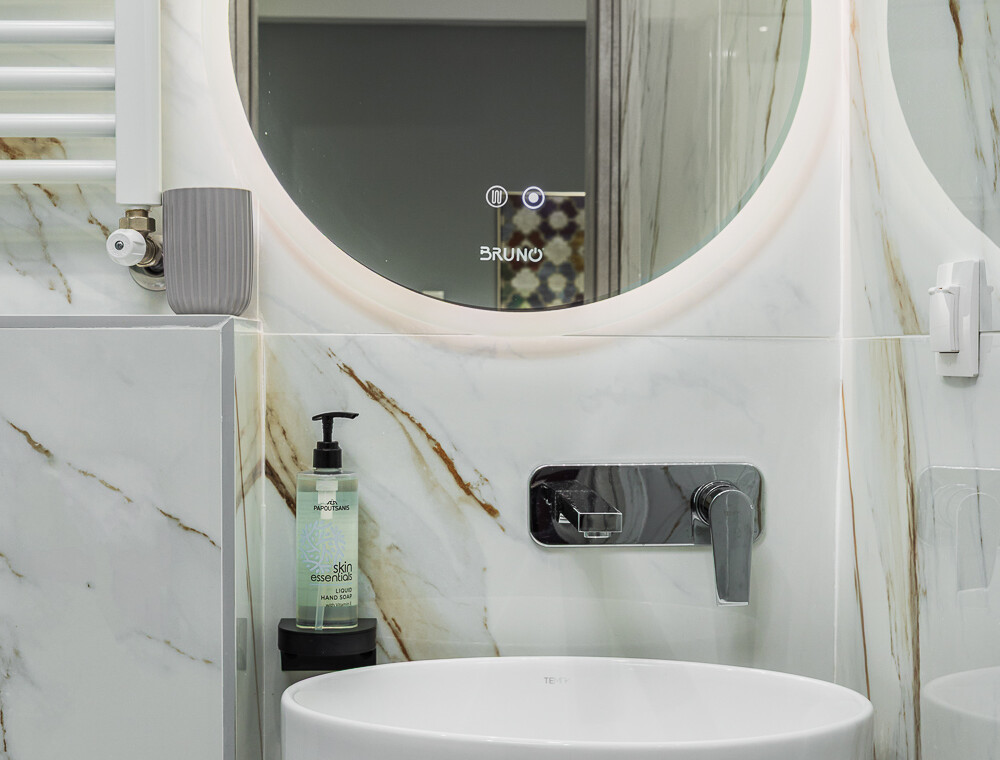 Η πλήρως εξοπλισμένη κουζίνα είναι ιδανική για σπιτικό μαγείρεμα, καθώς περιλαμβάνει φούρνο, εστίες, μηχανή Nespresso, βραστήρα, τοστιέρα και ευρύχωρα ντουλάπια με όλα τα απαραίτητα. Το άνετο υπνοδωμάτιο διαθέτει αναπαυτικό διπλό κρεβάτι με φρέσκα λευκά είδη και άφθονο χώρο αποθήκευσης, ενώ το μπάνιο ξεχωρίζει με πολυτελή μαρμάρινη διακόσμηση, ντουζιέρα με καταιονιστήρα βροχής, ποιοτικά προϊόντα περιποίησης και σεσουάρ μαλλιών.