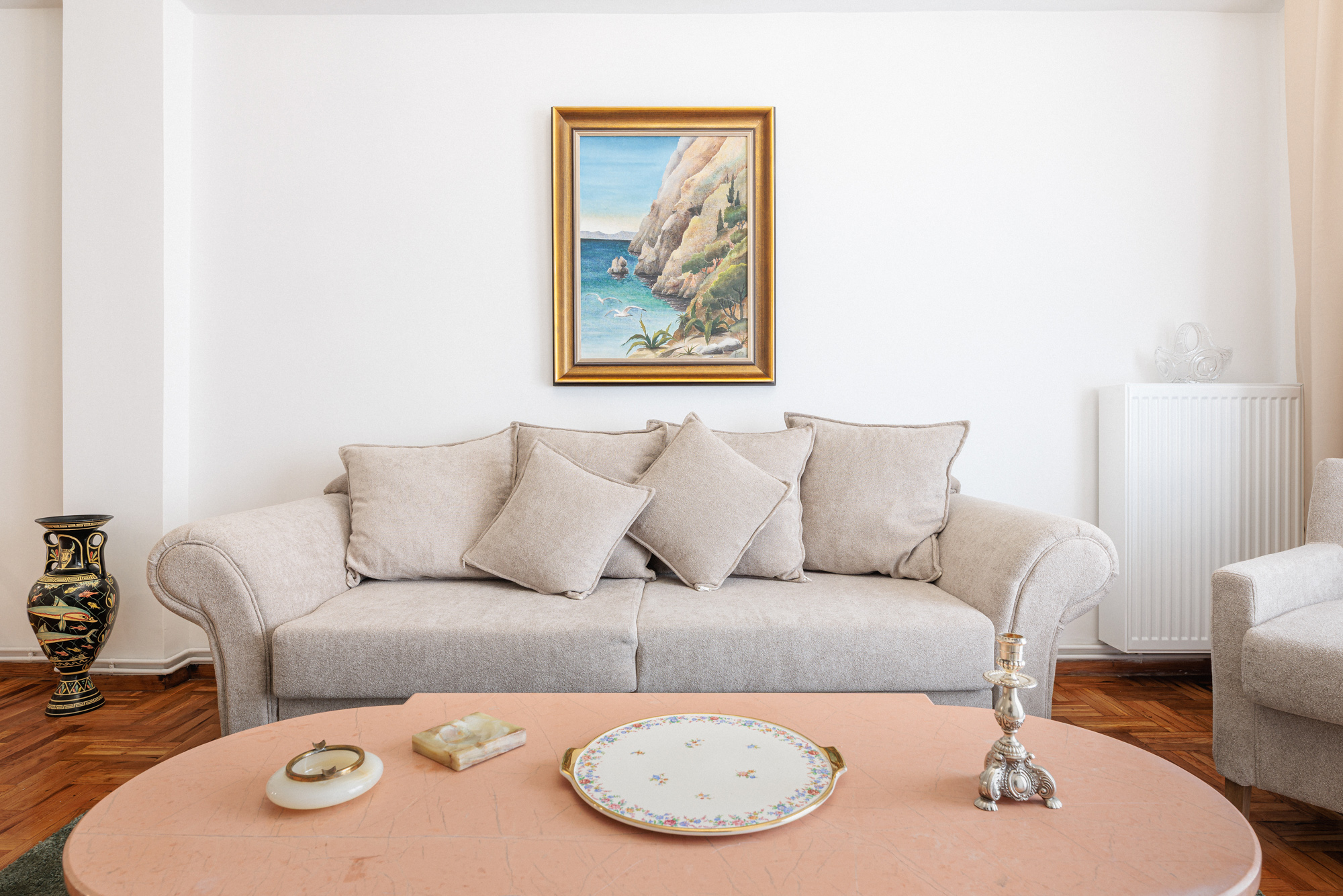 Erato by halu! is a sophisticated two-bedroom penthouse located on the 6th floor, right in the beating heart of Thessaloniki. Blending classical charm with modern comfort, the apartment is designed to make every guest feel at home.