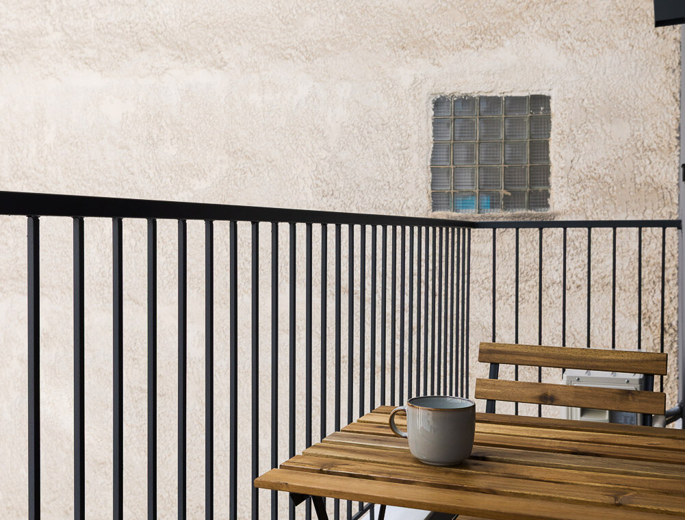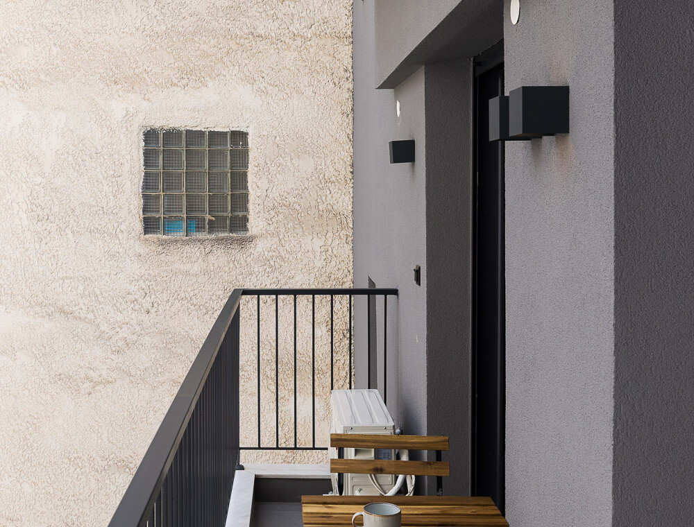 Το ιδιωτικό μπαλκόνι είναι ιδανικό για μια ήρεμη στιγμή το πρωί ή ένα χαλαρό βράδυ με θέα στη γειτονιά. Το μπάνιο είναι μοντέρνο και φρέσκο, με ντους τύπου walk-in, ποιοτικές λεπτομέρειες και απαλές πετσέτες που συμπληρώνουν την αίσθηση ενός boutique χώρου.