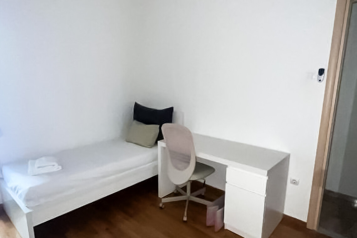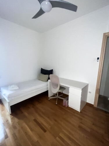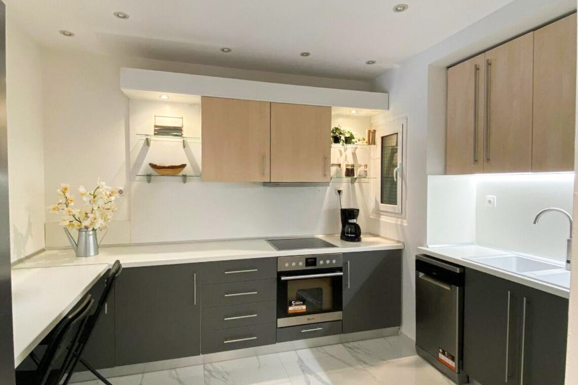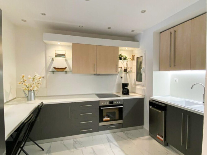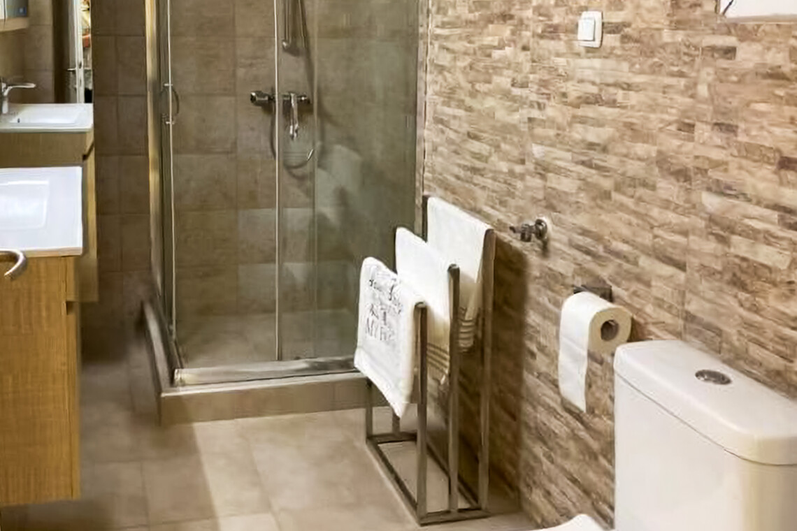 Grace has a bright open plan living and dining area with modern furnishings, a flat screen TV, and large openings that fill the home with natural light. The private kitchen is fully equipped for short or extended stays, with modern appliances, ample storage, and a washing machine discreetly integrated into the space. The apartment includes two comfortable queen bedrooms designed for rest and privacy, plus a third bedroom with a twin bed and a desk, ideal for guests who need a dedicated workspace. A key advantage is the two modern bathrooms, so everyone can get ready comfortably, even when you are traveling as a group. Both bathrooms offer walk in showers, quality finishes, fresh towels, and everyday essentials. Air conditioning, heating, free WiFi, and generous wardrobe space ensure a comfortable stay all year. Outside, you can enjoy a furnished private terrace for dining or relaxing, and an additional balcony with a city view.