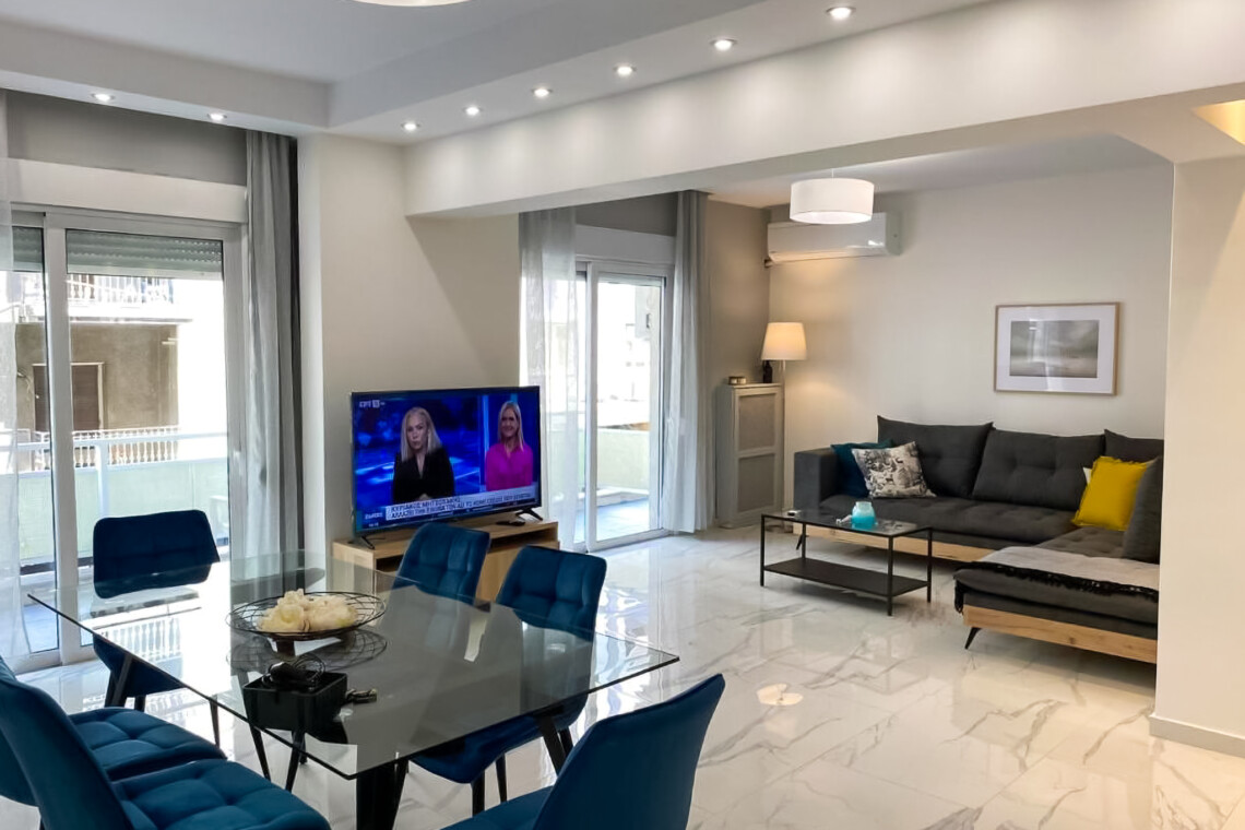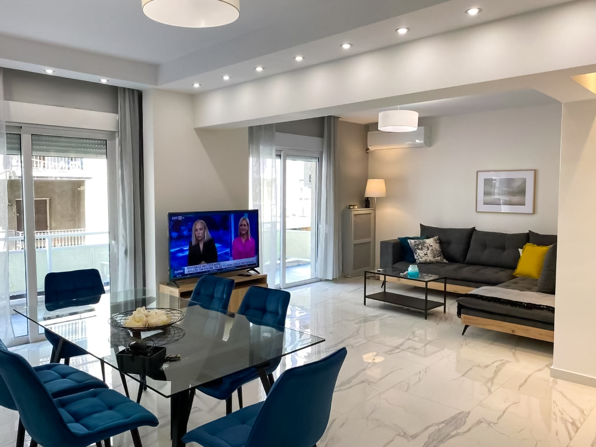 Welcome to Grace by halu! A spacious and elegant three bedroom apartment in the heart of Thessaloniki, offering 120 square meters of refined comfort and modern design. It is a great choice for families, friends, and business travelers who want space, privacy, and a central location.