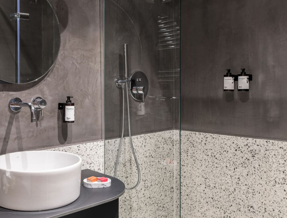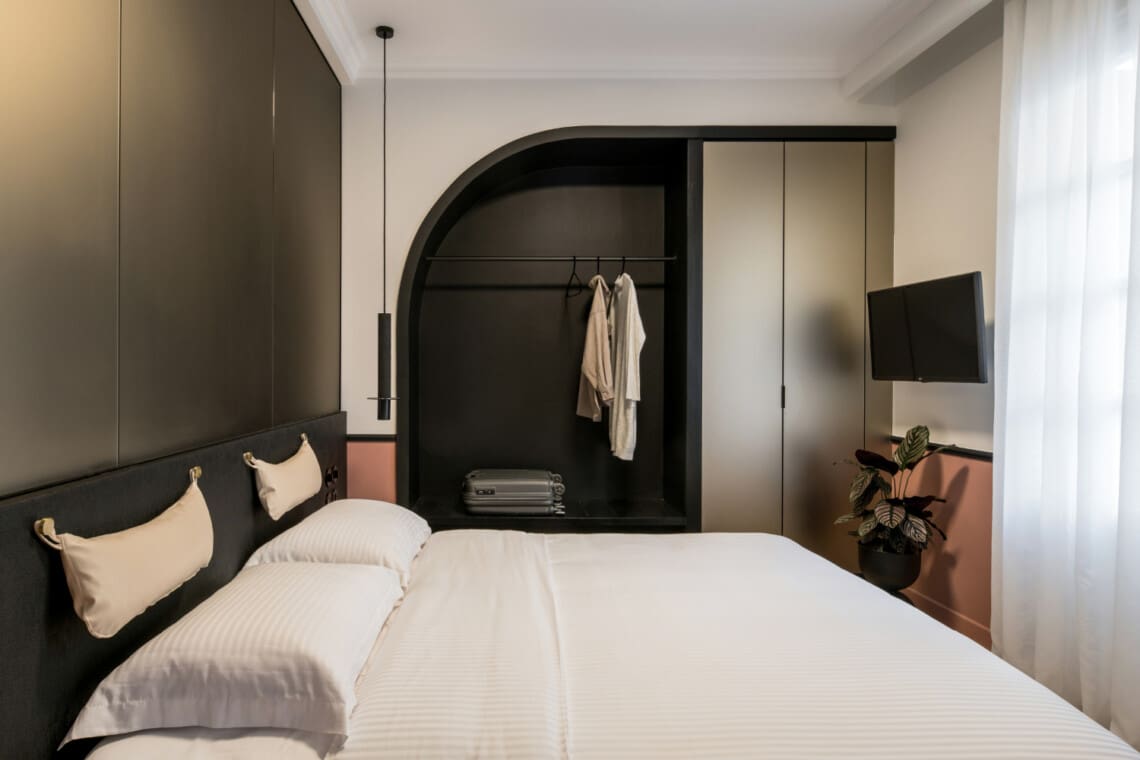Η Junior Σουίτα, με έκταση 27m², διαθέτει ένα διπλό κρεβάτι, έναν καναπέ-κρεβάτι και ιδιωτικό μπάνιο με ντους — ιδανική για χαλαρωτικές αποδράσεις και οικογενειακές διαμονές. Φιλοξενεί άνετα έως τέσσερις ενήλικες και είναι επιπλωμένη με σύγχρονες ανέσεις, όπως μηχανή καφέ Nespresso, ηχείο Marshall και signature προϊόντα περιποίησης για μια ανώτερη εμπειρία διαμονής.