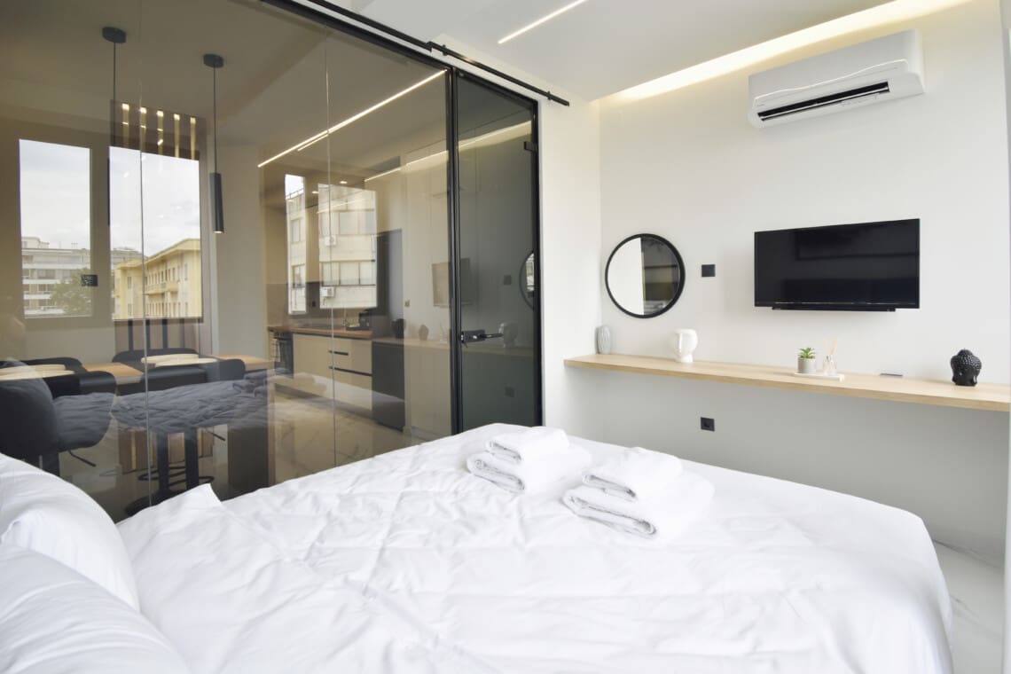 Το διαμέρισμά μας διαθέτει τοίχο παραθύρου, που πλημμυρίζει το χώρο με φυσικό φως και προσφέρει υπέροχη θέα στη ζωντανή γειτονιά. Βγείτε έξω και βρίσκεστε στην καρδιά της Θεσσαλονίκης! Βρίσκεστε σε μικρή απόσταση με τα πόδια από μοντέρνα καφέ, νόστιμα εστιατόρια και δημοφιλή αξιοθέατα. Έχουμε σκεφτεί τα πάντα για να κάνουμε τη διαμονή σας όσο το δυνατόν πιο άνετη. Από το Wi-Fi υψηλής ταχύτητας μέχρι τον κλιματισμό, θα νιώσετε σαν στο σπίτι σας.