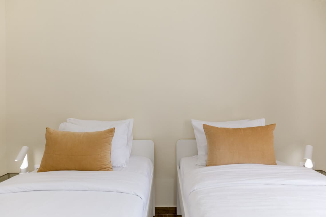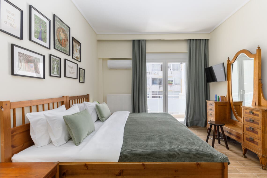 Καθώς μπαίνεις μέσα, θα βρεις ένα ζεστό και φιλόξενο διαμέρισμα δύο υπνοδωματίων που μπορεί άνετα να φιλοξενήσει έως και τέσσερις επισκέπτες. Η κύρια κρεβατοκάμαρα διαθέτει ένα βελούδινο κρεβάτι queen size, εξασφαλίζοντας έναν ξεκούραστο βραδινό ύπνο μετά από μια μέρα εξερεύνησης. Το δεύτερο υπνοδωμάτιο είναι επιπλωμένο με δύο μονά κρεβάτια, ιδανικό για φίλους ή παιδιά, προσφέροντας στον καθένα τον δικό του χώρο για να χαλαρώσει.