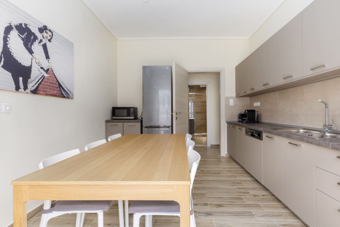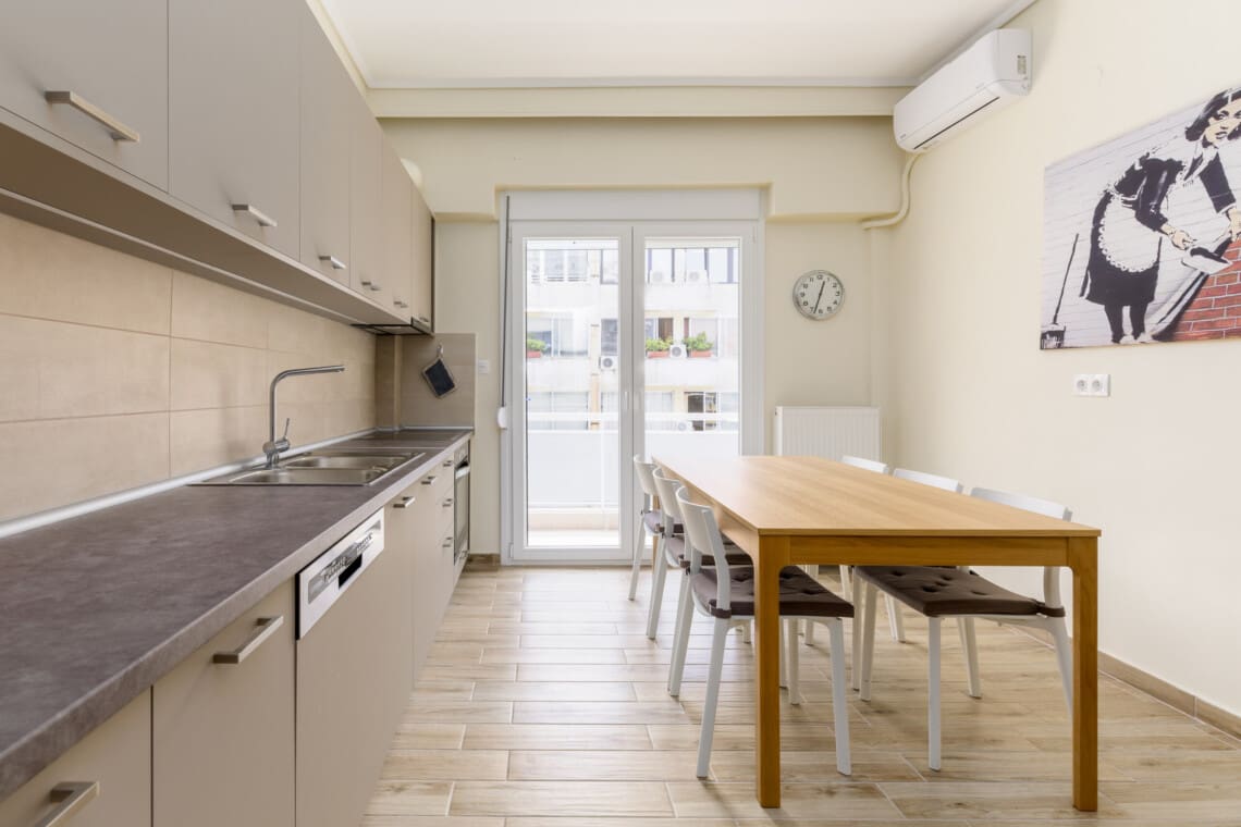 Το σαλόνι είναι η καρδιά του διαμερίσματος, ένας χώρος όπου μπορείτε να χαλαρώσετε στον άνετο καναπέ, να ανακεφαλαιώσετε τις περιπέτειες της ημέρας σας ή να προγραμματίσετε τις αυριανές εξόδους. Με μια πλήρως εξοπλισμένη κουζίνα στη διάθεσή σας, η προετοιμασία των γευμάτων είναι παιχνιδάκι, είτε πρόκειται για ένα γρήγορο πρωινό πριν βγείτε έξω είτε για ένα χαλαρό δείπνο με τοπικά υλικά που βρίσκονται σε κοντινές αγορές. Η τραπεζαρία προσφέρει ένα άνετο μέρος για να συγκεντρώσετε και να μοιραστείτε γεύματα και ιστορίες.
