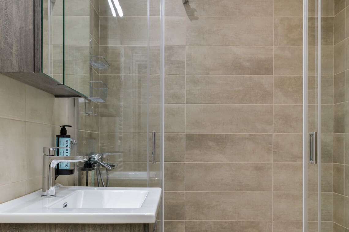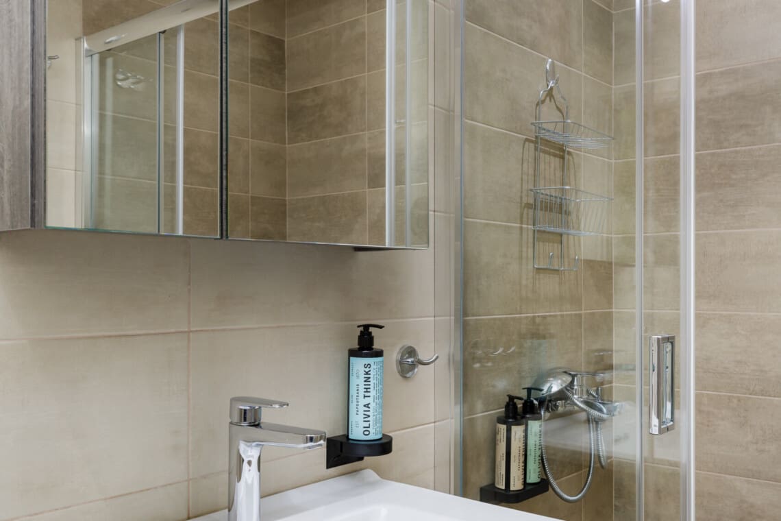Το διαμέρισμά μας διαθέτει επίσης ένα μοντέρνο μπάνιο με ντους, εφοδιασμένο με απαραίτητα για να κάνει τη διαμονή σας όσο το δυνατόν πιο άνετη.