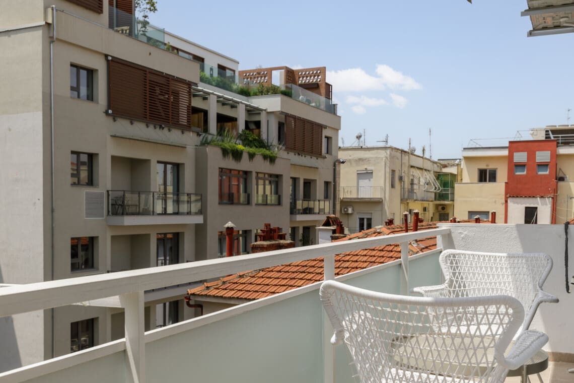 Αλλά ίσως μια από τις πιο απολαυστικές πτυχές του σπιτιού μας είναι το μπαλκόνι. Εξοπλισμένο με έπιπλα εξωτερικού χώρου, είναι το τέλειο μέρος για να απολαύσετε έναν πρωινό καφέ ή ένα βραδινό ποτήρι κρασί, όλα αυτά απολαμβάνοντας την εκπληκτική θέα στην πόλη και τη ζωντανή ατμόσφαιρα της οδού Ερμού παρακάτω.