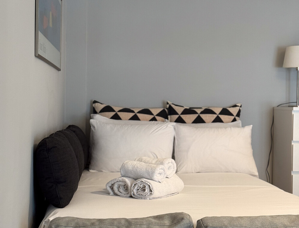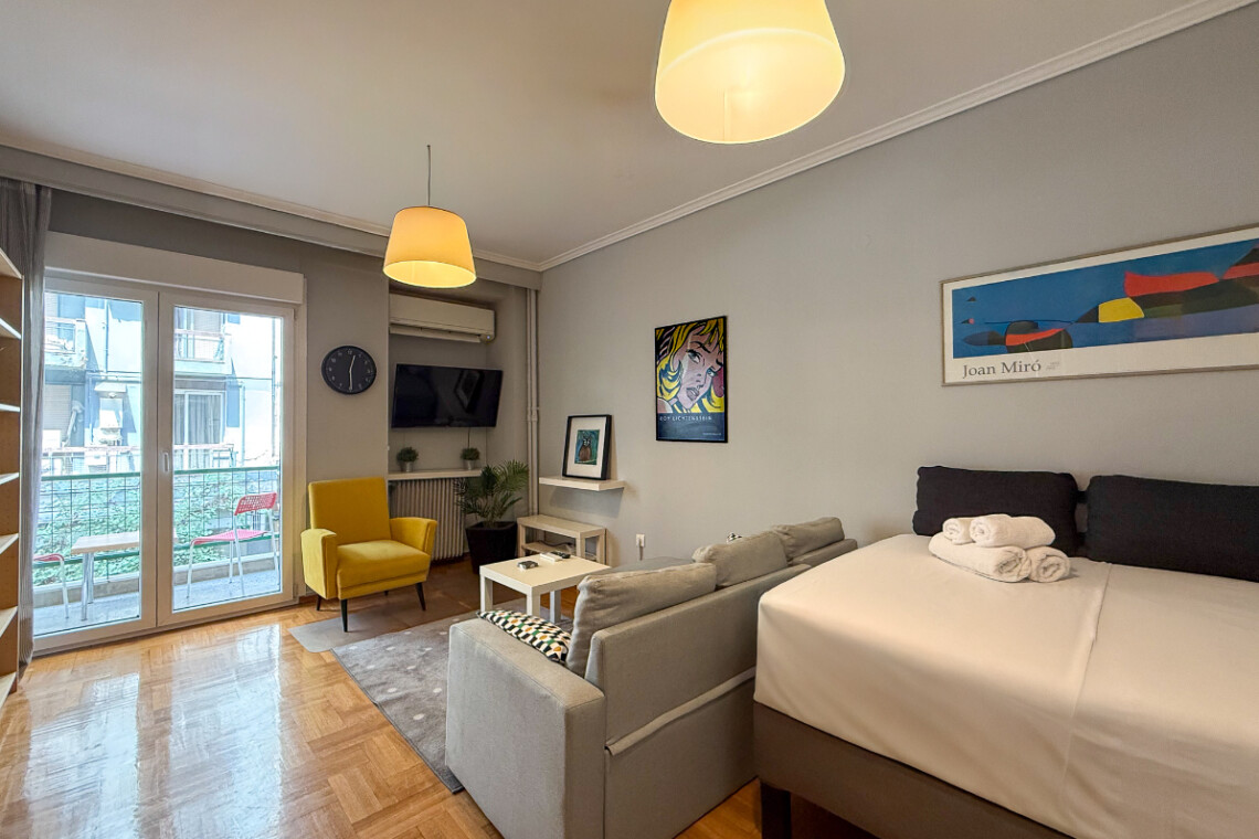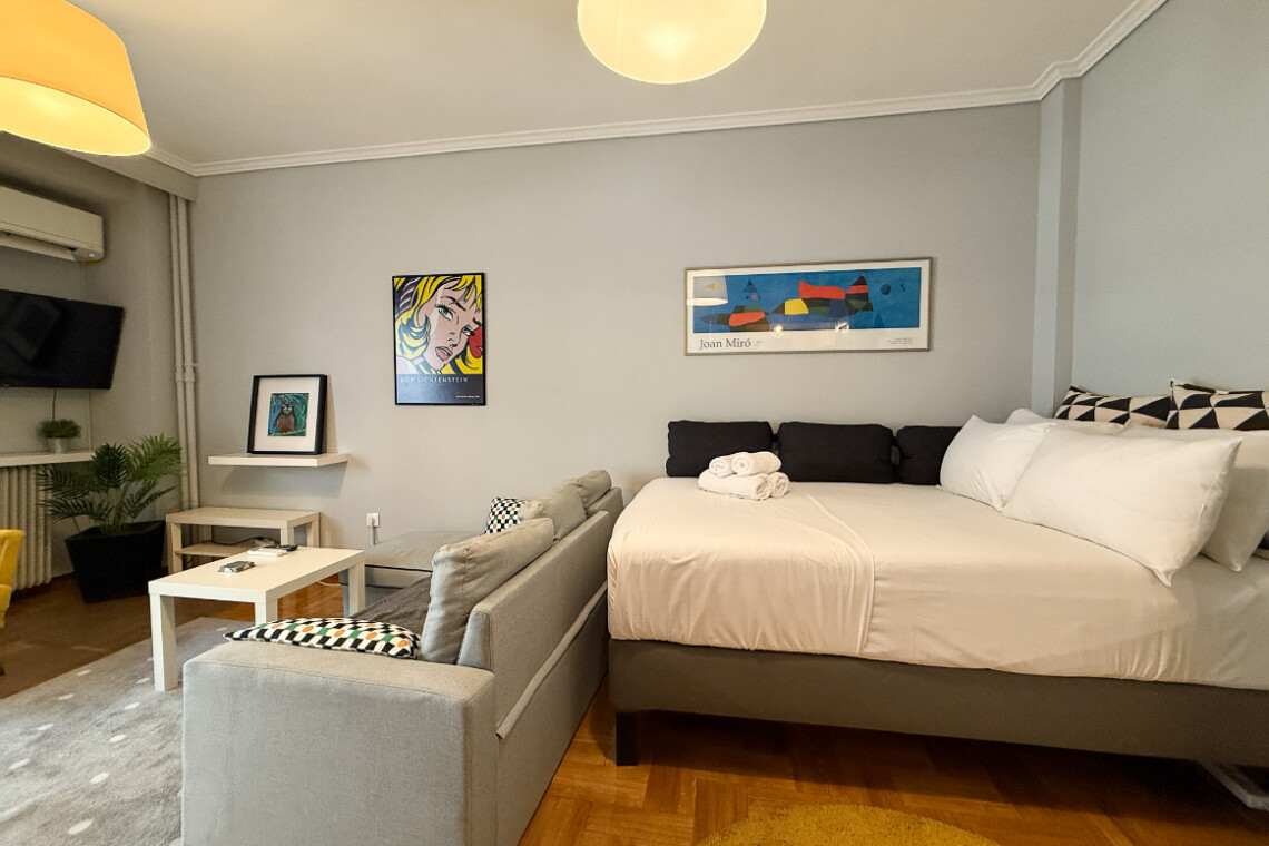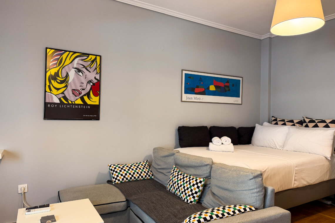 Καλώς ήρθατε στο Miró, ένα φωτεινό και καλλιτεχνικό διαμέρισμα στον πρώτο όροφο, στην καρδιά της Θεσσαλονίκης. Το διαμέρισμα προσφέρει ένα άνετο υπνοδωμάτιο με διπλό κρεβάτι και σαλόνι με δεύτερο κρεβάτι, ώστε να καλύπτει τις ανάγκες οικογενειών, φίλων ή συναδέλφων που ταξιδεύουν μαζί.