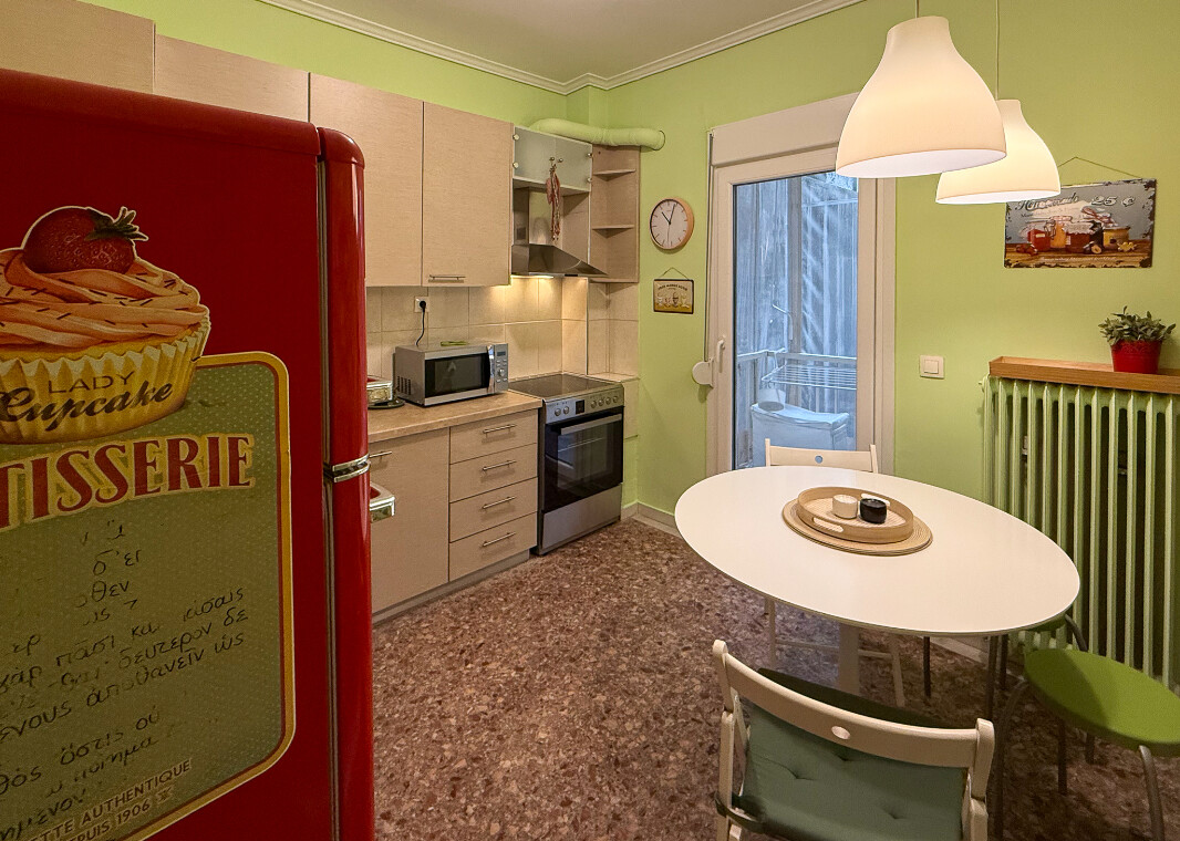 Το διαμέρισμα είναι πλήρως εξοπλισμένο για μια ξέγνοιαστη διαμονή. Η κουζίνα περιλαμβάνει όλα τα βασικά σκεύη, εστίες και φούρνο μικροκυμάτων για να ετοιμάσετε τα γεύματά σας. Διαθέτει πλυντήριο ρούχων για μεγαλύτερες διαμονές και δύο κλιματιστικά που διασφαλίζουν την ιδανική θερμοκρασία όλο τον χρόνο. Στο καθιστικό θα βρείτε τηλεόραση επίπεδης οθόνης, δωρεάν Wi-Fi και ειδικό χώρο εργασίας, ιδανικό για όσους δουλεύουν εξ αποστάσεως.