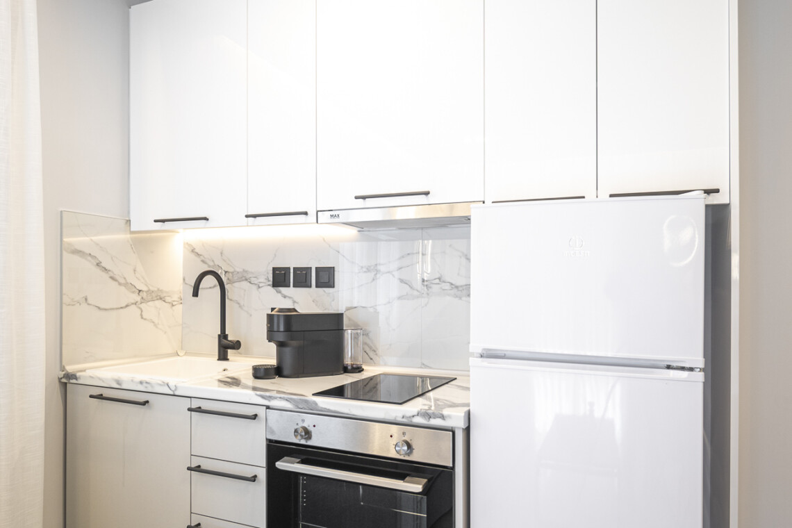 Η πλήρως εξοπλισμένη κουζίνα σάς επιτρέπει να ετοιμάσετε από ένα γρήγορο πρωινό μέχρι ένα ολοκληρωμένο γεύμα, με σύγχρονες συσκευές όπως εστίες, φούρνο, ψυγείο και μηχανή καφέ.