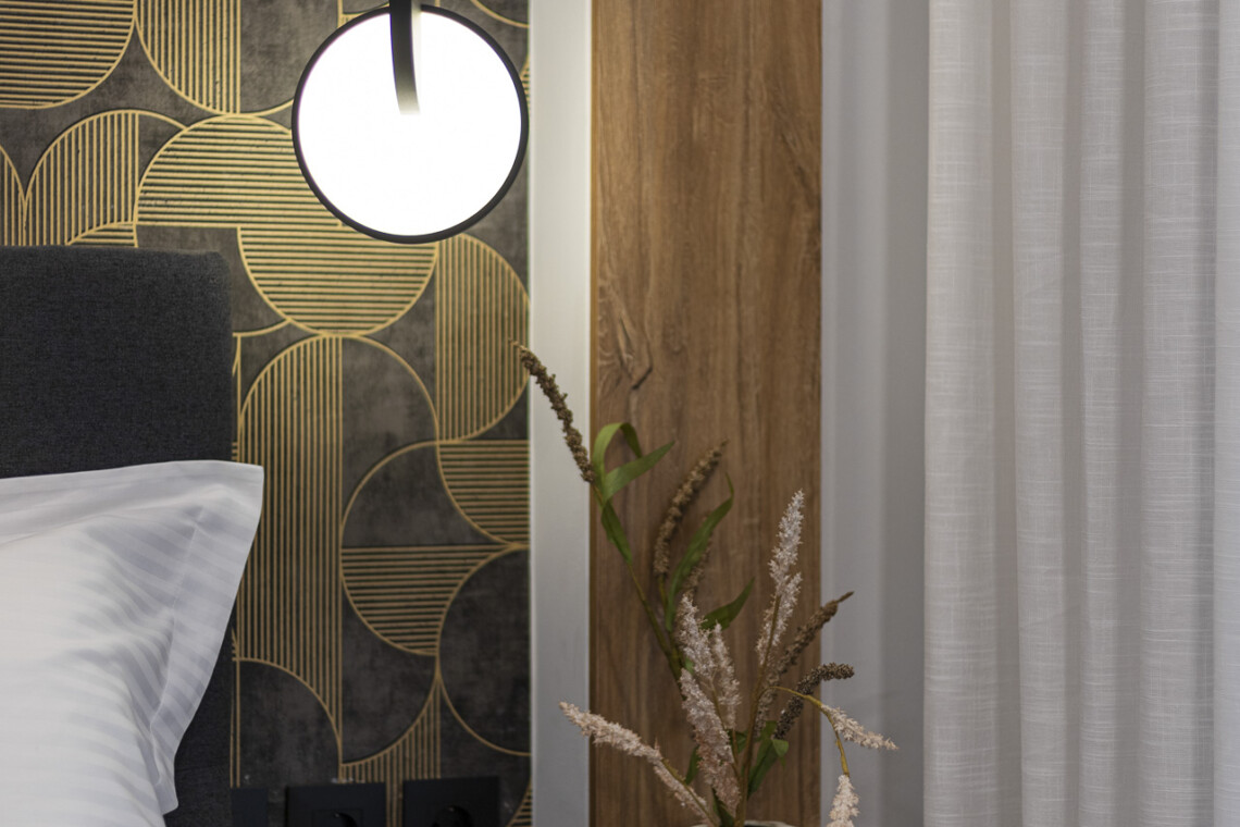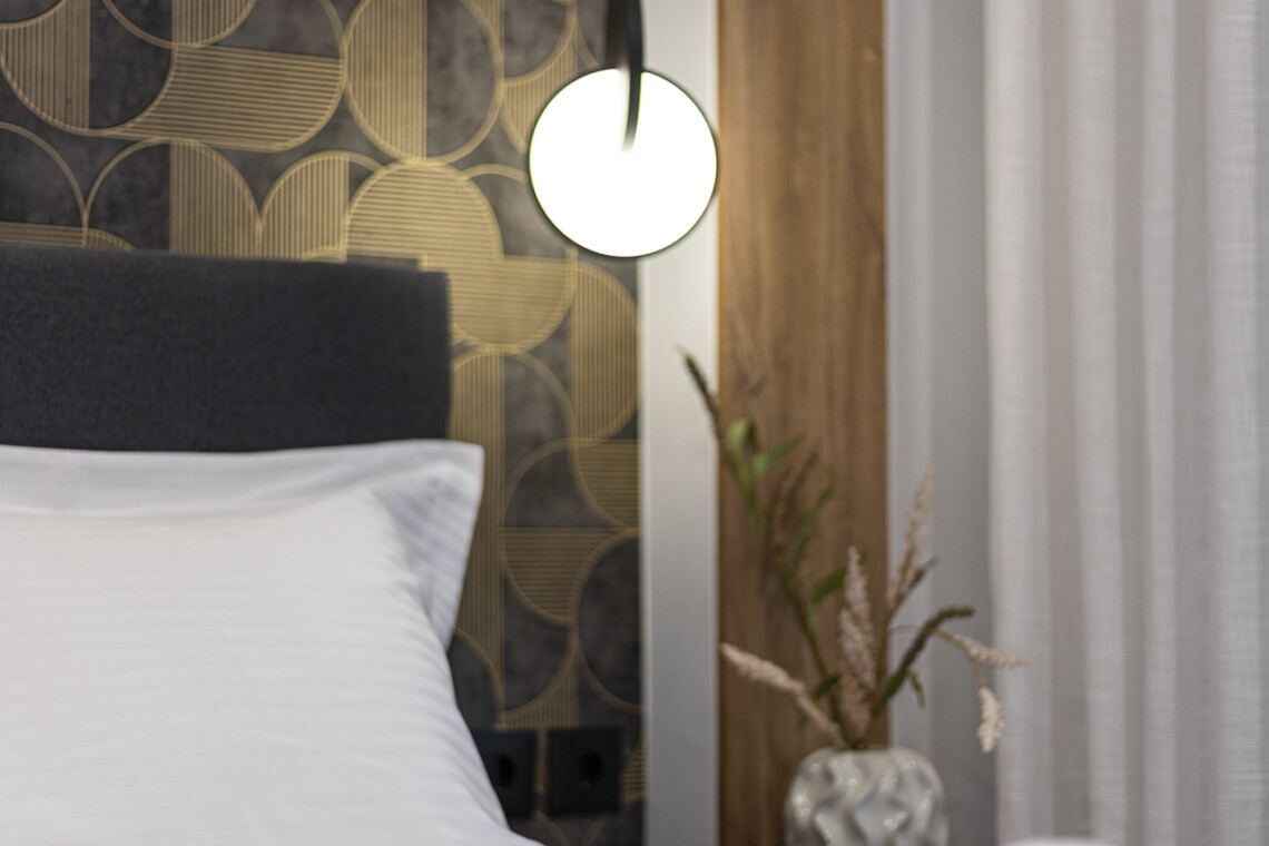 Το υπνοδωμάτιο αποτελεί μια ήσυχη όαση, με διπλό κρεβάτι, πολυτελή λευκά είδη και άνετους αποθηκευτικούς χώρους, κάνοντάς σας να νιώσετε σαν στο σπίτι σας. Οι ζεστοί, γήινοι τόνοι και ο ατμοσφαιρικός φωτισμός προσφέρουν ένα ιδανικό περιβάλλον για ξεκούραστο ύπνο.