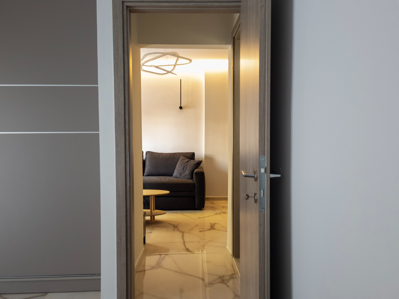 Ανακαλύψτε άνεση και ευκολία σε αυτό το ανακαινισμένο διαμέρισμα 45m², σχεδιασμένο προσεκτικά για σύντομες αλλά και μακροχρόνιες διαμονές. Το Myrto διαθέτει ένα ήσυχο υπνοδωμάτιο με διπλό κρεβάτι, ένα ευρύχωρο σαλόνι με διπλό καναπέ-κρεβάτι και ένα κομψό μπάνιο. Το ιδιωτικό μπαλκόνι είναι το ιδανικό σημείο για χαλάρωση, ενώ η φωτεινή και ανοιχτή διαρρύθμιση δημιουργεί μια φιλόξενη ατμόσφαιρα.
