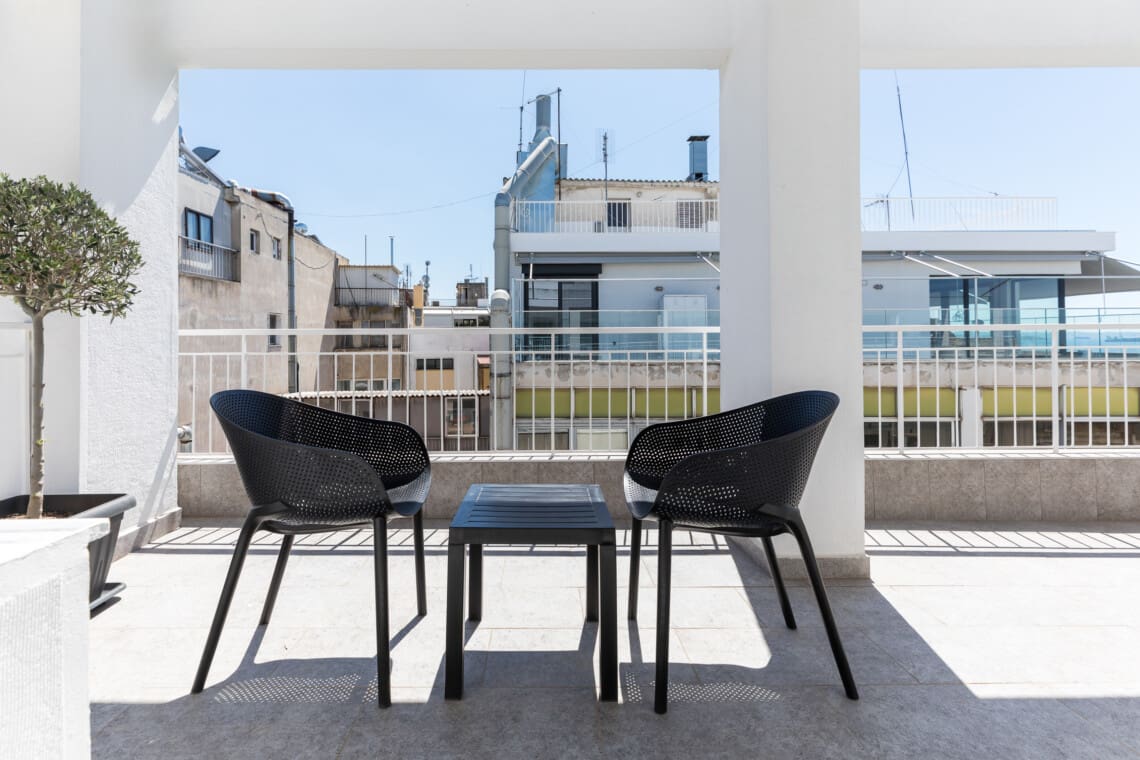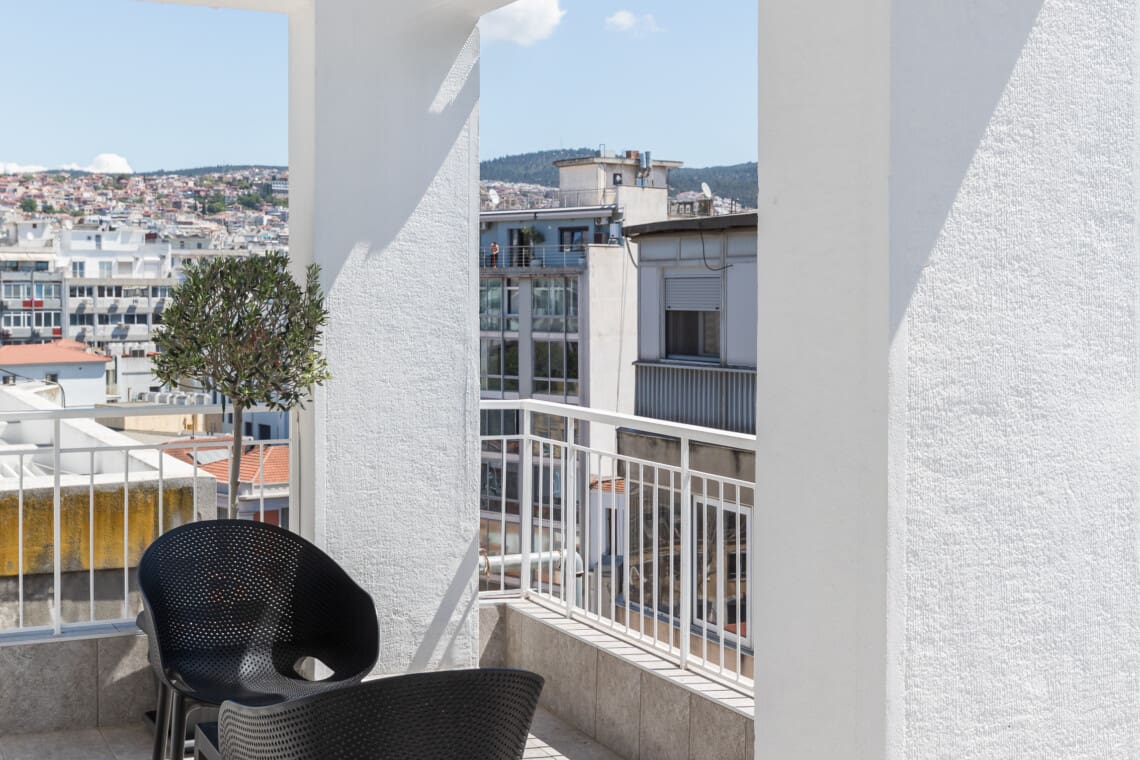 Ένα από τα κυριότερα σημεία του διαμερίσματός μας είναι το φιλόξενο μπαλκόνι, με θέα στη θάλασσα. Απολαύστε τον πρωινό σας καφέ ή πιείτε ένα ποτήρι κρασί καθώς απολαμβάνετε την πανοραμική θέα και απολαμβάνετε τη ζωντανή ατμόσφαιρα από κάτω.