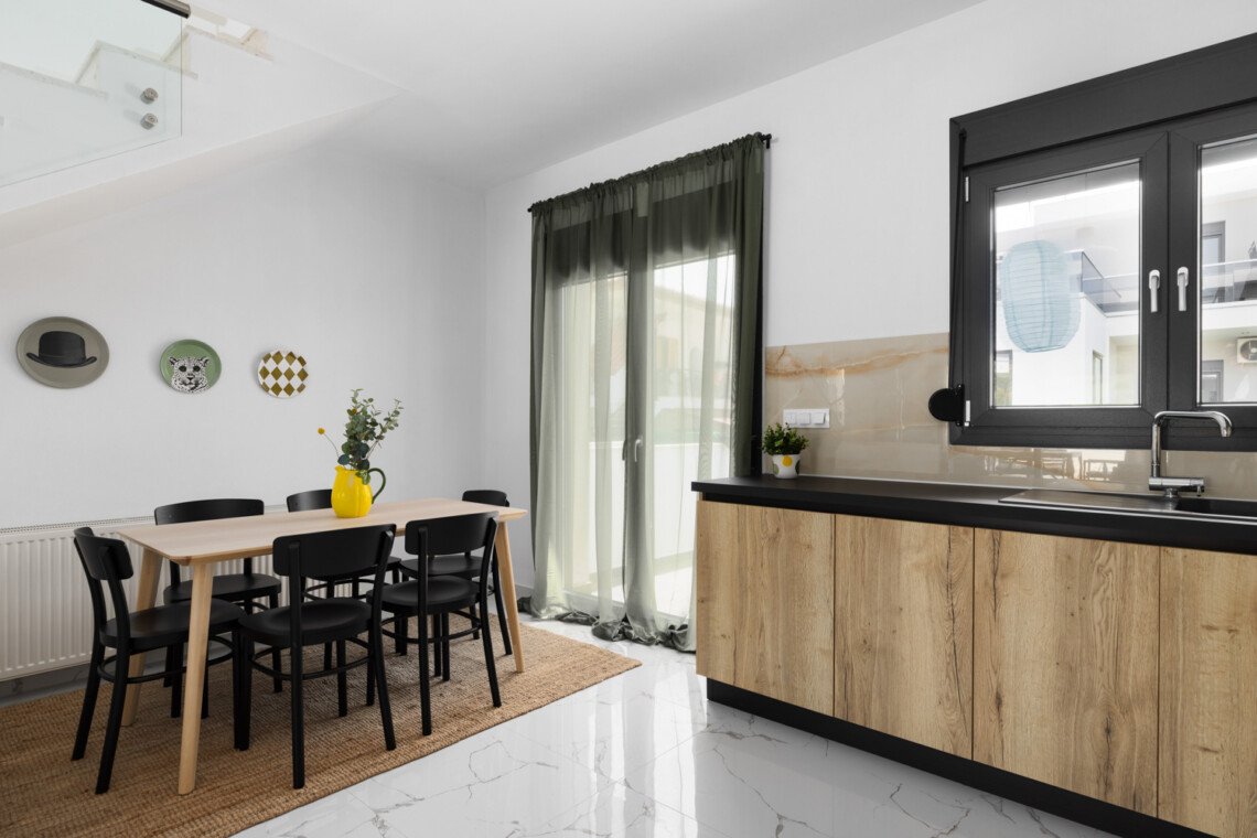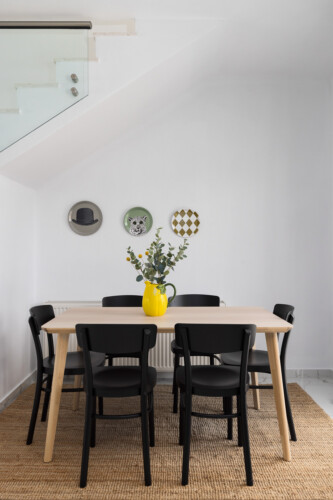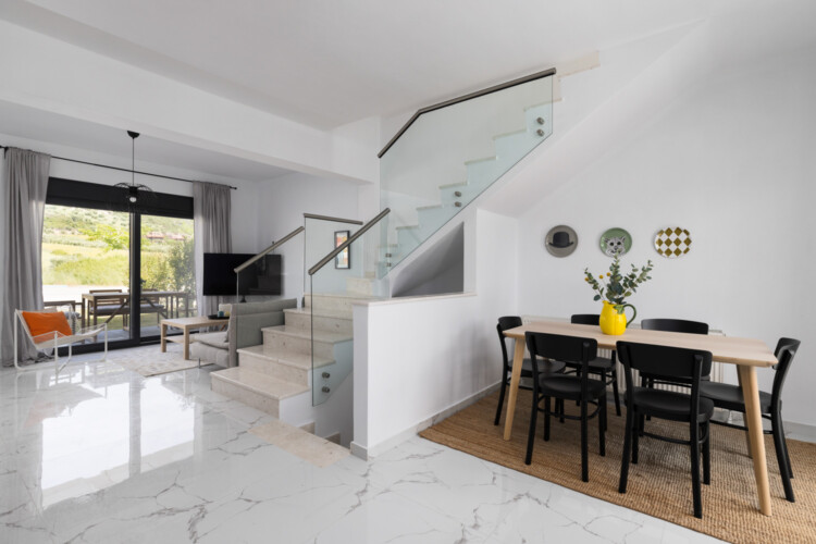 Αυτό το κομψό εξοχικό σπίτι 110 τ.μ. στην καρδιά της Νέας Σκιώνης, Χαλκιδικής, βρίσκεται μόλις 800 μέτρα από την παραλία. Απλωμένο σε δύο ορόφους, προσφέρει τρία ευρύχωρα υπνοδωμάτια με άνετα queen-size κρεβάτια, καθιστώντας το ιδανικό για οικογένειες ή παρέες. Το φωτεινό σαλόνι συνδέεται με μια σύγχρονη κουζίνα, πλήρως εξοπλισμένη με πλυντήριο πιάτων, μηχανή Nespresso, φούρνο, βραστήρα και φούρνο μικροκυμάτων. Στον εξωτερικό χώρο, μπορείτε να απολαύσετε τα γεύματά σας στην τραπεζαρία της αυλής ή να χαλαρώσετε το βράδυ με ένα μπάρμπεκιου. Το πλυντήριο ρούχων προσφέρει επιπλέον άνεση, ενώ ο κλιματισμός σε όλα τα δωμάτια, οι σίτες και η Smart TV εξασφαλίζουν μια ευχάριστη διαμονή. Ένα πολύχρωμο playroom προσφέρει διασκέδαση για μικρούς και μεγάλους.