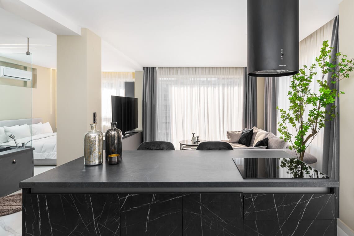 Το διαμέρισμα διαθέτει πλήρως εξοπλισμένη κουζίνα με σύγχρονες συσκευές, ιδανική για την προετοιμασία γευμάτων. Επιπλέον, παροχές όπως πλυντήριο ρούχων, πλυντήριο πιάτων, μηχανή Nespresso, σίδερο με σιδερώστρα και πιστολάκι μαλλιών εξασφαλίζουν μια άνετη και ξεκούραστη διαμονή. Με κλιματισμό, θέρμανση φυσικού αερίου και πρόσβαση μέσω ανελκυστήρα, κάθε λεπτομέρεια έχει μελετηθεί με προσοχή.