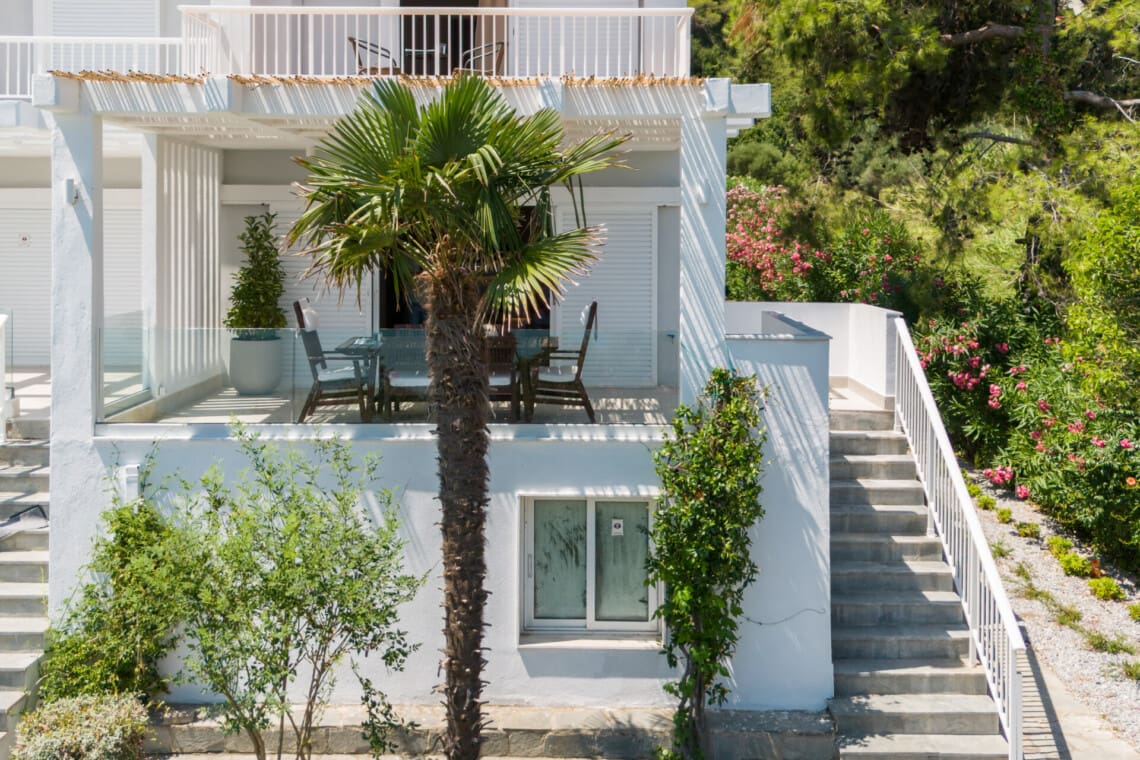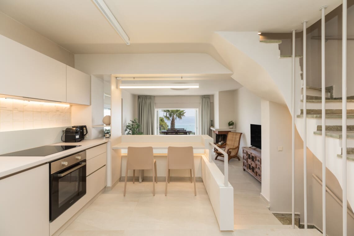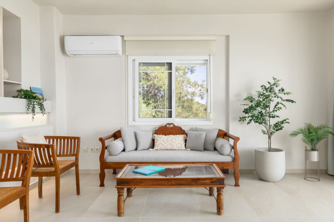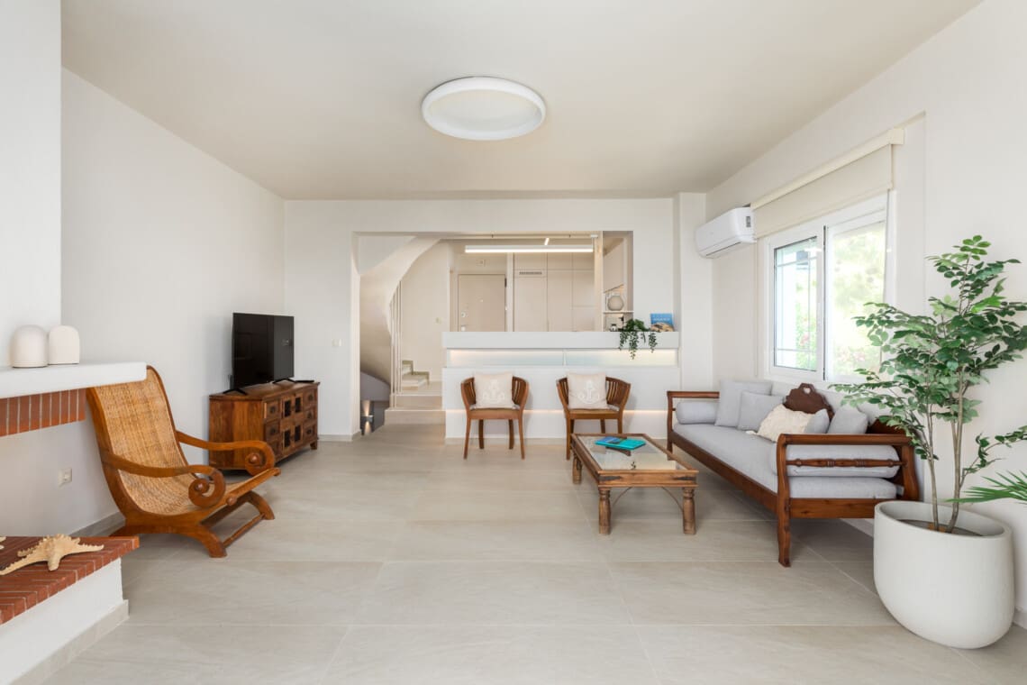 Our charming villa with sea view is the perfect getaway for families and groups. It offers four cozy bedrooms: two with comfortable queen-size beds and two with single beds, ensuring everyone has a restful night. You’ll love spending time in our spacious living room, which boasts a stunning sea view. Imagine relaxing here with your loved ones, watching the sunset over the water. We have two bathrooms with showers and an extra WC, so there’s plenty of space for everyone to get ready for the day.