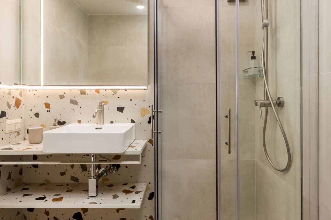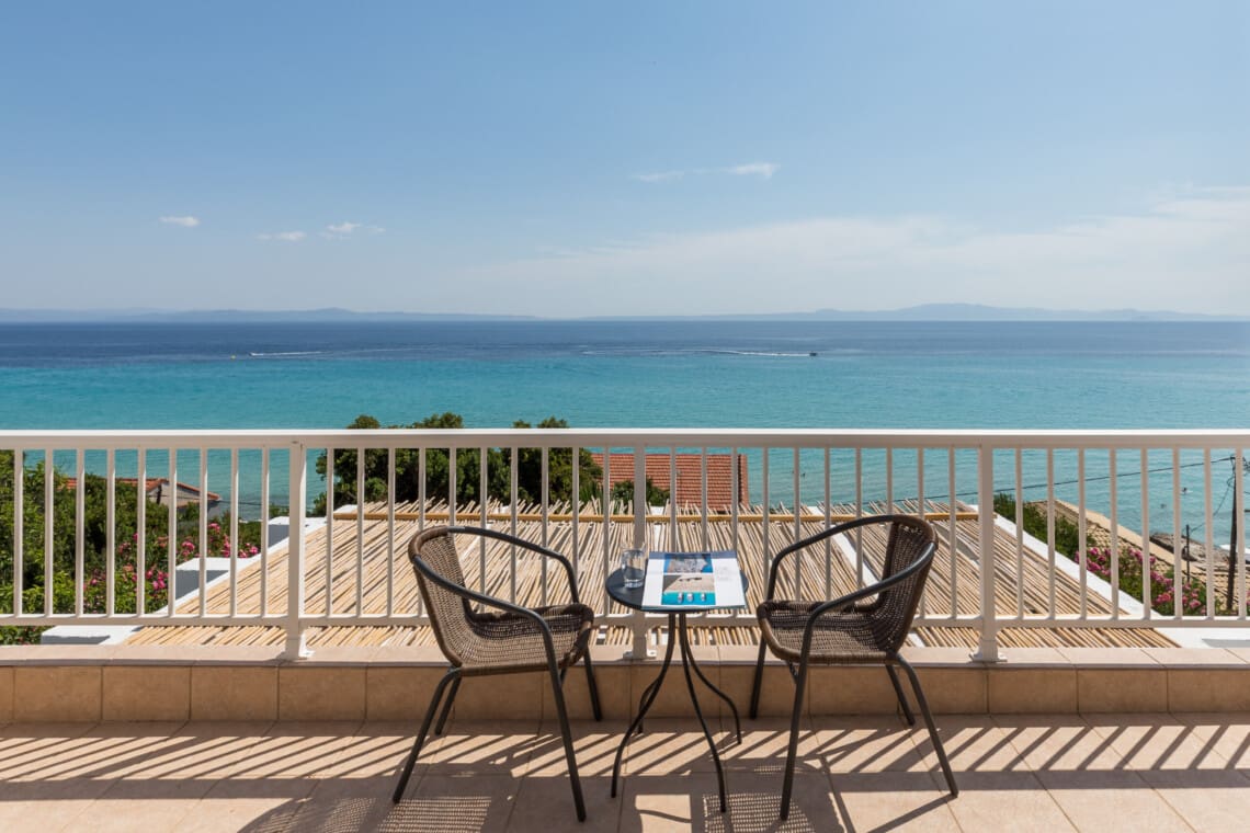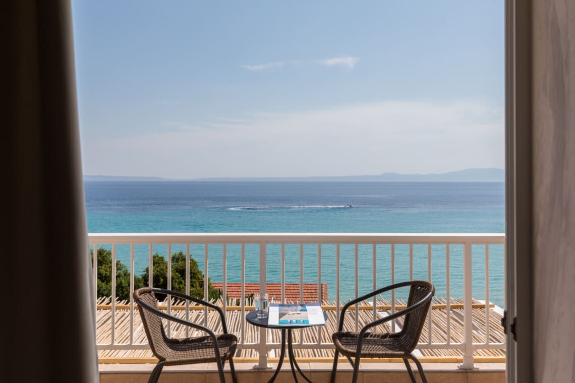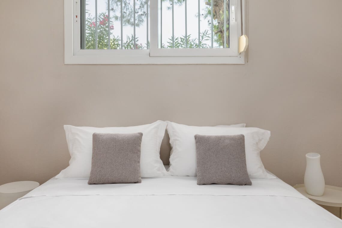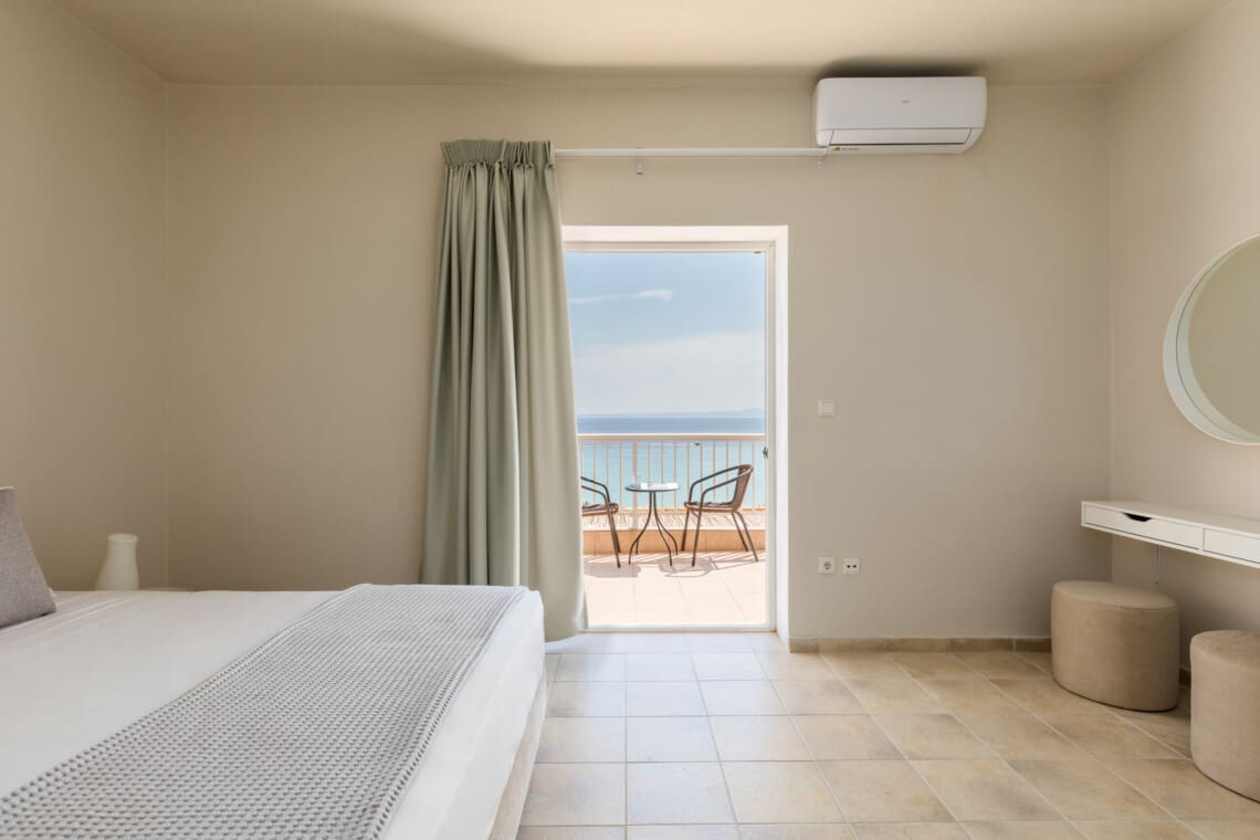 Our charming villa with sea view is the perfect getaway for families and groups. It offers four cozy bedrooms: two with comfortable queen-size beds and two with single beds, ensuring everyone has a restful night. You’ll love spending time in our spacious living room, which boasts a stunning sea view. Imagine relaxing here with your loved ones, watching the sunset over the water. We have two bathrooms with showers and an extra WC, so there’s plenty of space for everyone to get ready for the day.