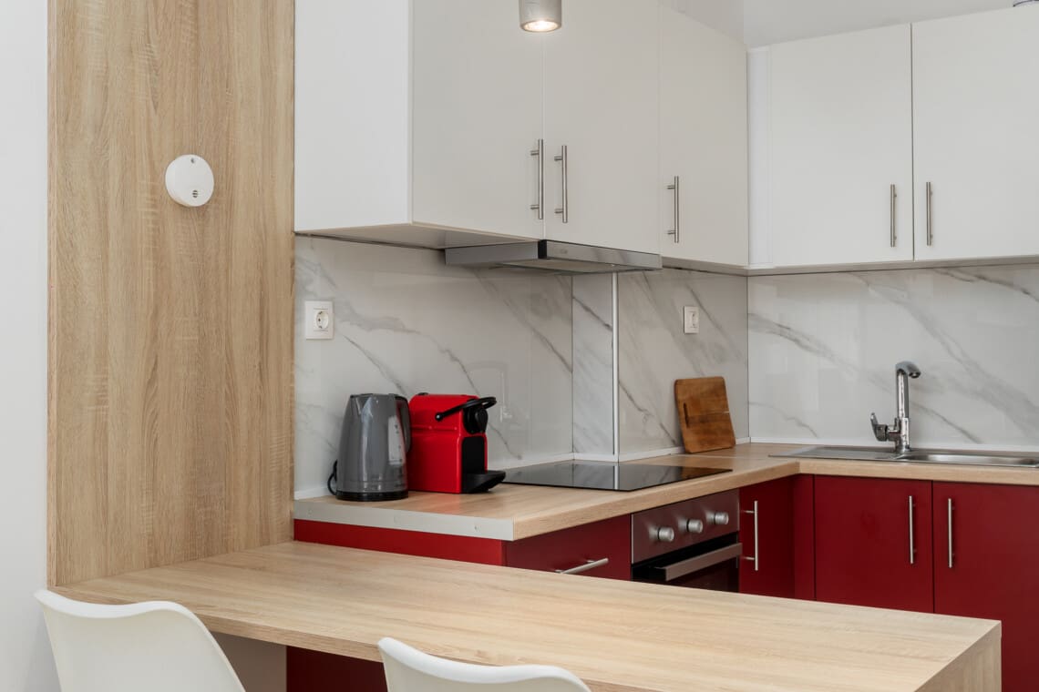 Nestled on a quiet street, this 1-bedroom apartment is your retreat after a day of exploring. The bedroom boasts a comfortable queen-size bed ensuring a restful night’s sleep. In the living room, unwind on the sofa bed with your favorite book or enjoy a movie night on the flat-screen TV. The space is designed with a blend of comfort and style, ensuring a homely feel throughout your stay.