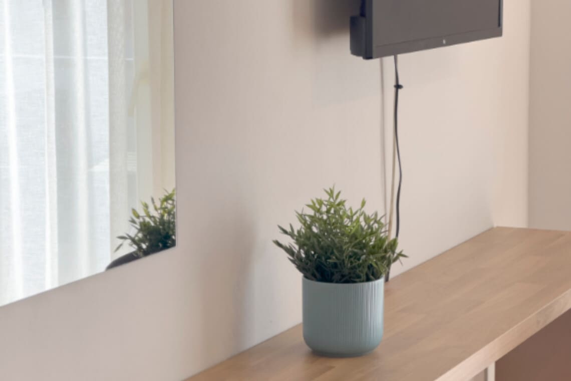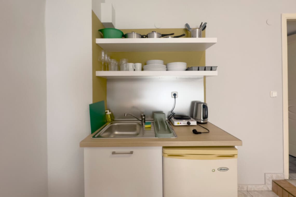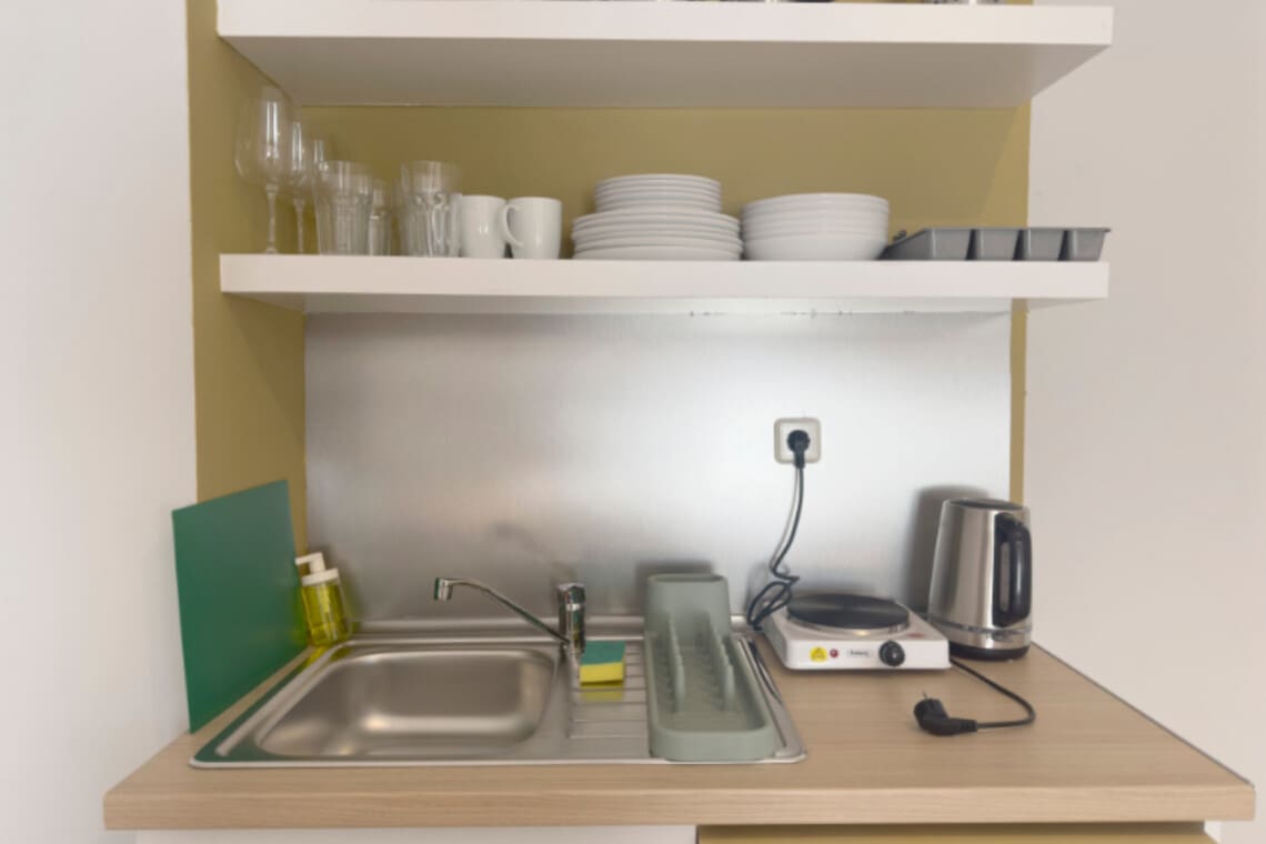 Απολαύστε μια ξεκούραστη νύχτα στο άνετο διπλό κρεβάτι μας. Φρεσκάρετε στο μοντέρνο μπάνιο με ντους. Ετοιμάστε απλά γεύματα ή σνακ στην άρτια εξοπλισμένη μικρή κουζίνα μας. Βγείτε έξω στο μπαλκόνι, όπου μπορείτε να χαλαρώσετε στα έπιπλα εξωτερικού χώρου και να απολαύσετε τον καθαρό αέρα. Το στούντιο μας είναι προσεκτικά επιπλωμένο για να προσφέρει μια ζεστή και φιλόξενη ατμόσφαιρα.