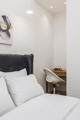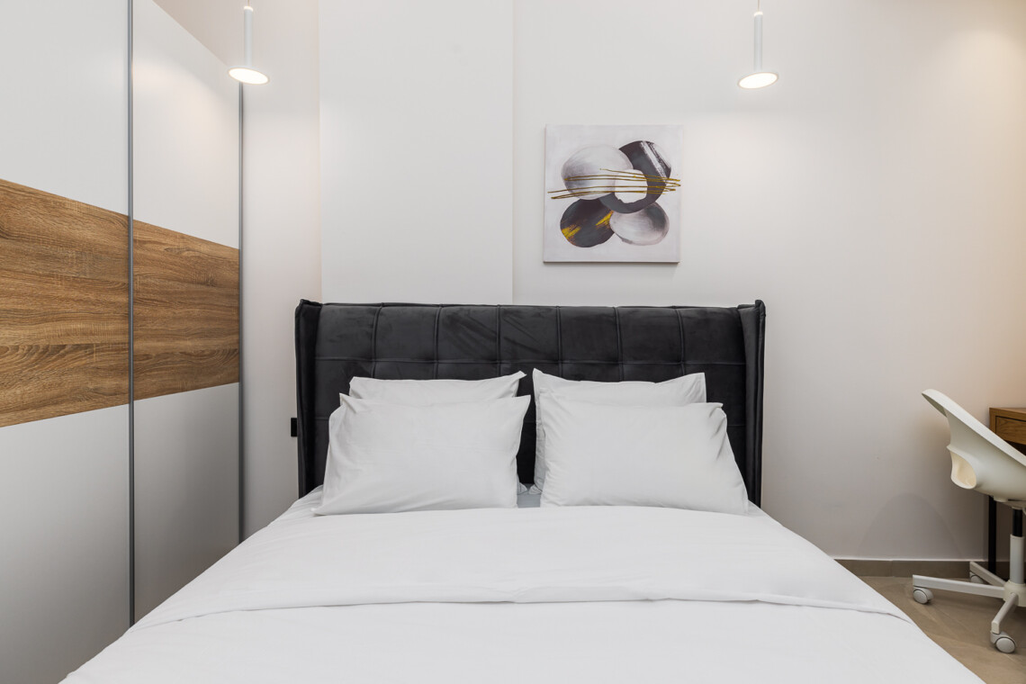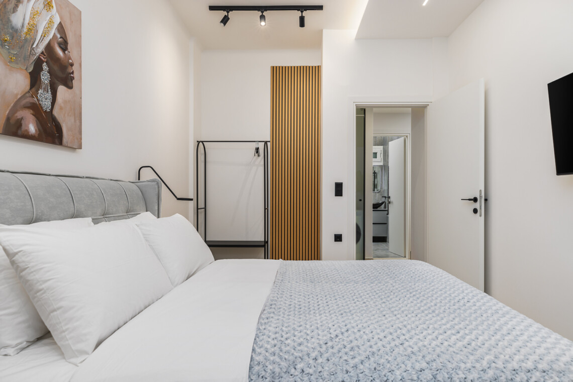 Το κομψό μπάνιο περιλαμβάνει μία πολυτελή και άνετη ντουζιέρα. Επιπλέον, φρέσκες πετσέτες και premium κλινοσκεπάσματα εξασφαλίζουν μια άνετη και ξέγνοιαστη διαμονή. Από το ιδιωτικό μπαλκόνι του διαμερίσματος, μπορείτε να απολαύσετε την ζωντανή ενέργεια της πόλης. Επιπρόσθετα, το δωρεάν Wi-Fi υψηλής ταχύτητας σας βοηθά να παραμένετε συνδεδεμένοι και να σχεδιάζετε τις εξορμήσεις σας με ευκολία.