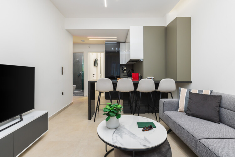 Μπείτε σε έναν όμορφα σχεδιασμένο χώρο που προσφέρει τόσο χαλάρωση όσο και ευκολία. Το διαμέρισμα διαθέτει δύο κομψά υπνοδωμάτια, τα οποία είναι ιδανικά για οικογένειες που χρειάζονται επιπλέον χώρο. Επιπλέον, το ευρύχωρο σαλόνι προσφέρει τον τέλειο χώρο για ποιοτικό χρόνο, είτε για χαλάρωση μετά από περιήγηση είτε για να σχεδιάσετε τις επόμενες δραστηριότητες της ημέρας. Επίσης, η πλήρως εξοπλισμένη κουζίνα διαθέτει σύγχρονες συσκευές όπως πλυντήριο πιάτων, καφετιέρα και φούρνο μικροκυμάτων, καθιστώντας την προετοιμασία γευμάτων απλή και ευχάριστη.