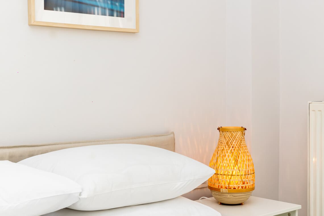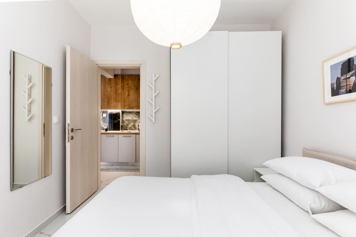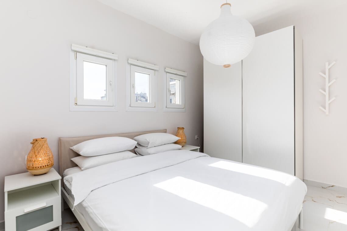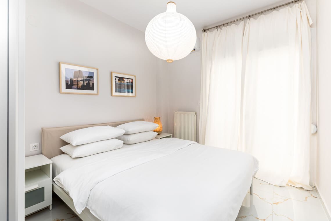 Τα υπνοδωμάτια διαθέτουν ένα άνετο κρεβάτι queen size, που σας προσκαλεί να βυθιστείτε στην βελούδινη αγκαλιά του μετά από μια κουραστική μέρα εξερεύνησης της ζωντανής πόλης. Με απαλά, πολυτελή κλινοσκεπάσματα και γαλήνια ατμόσφαιρα, είναι εγγυημένος ένας ήσυχος βραδινός ύπνος.
