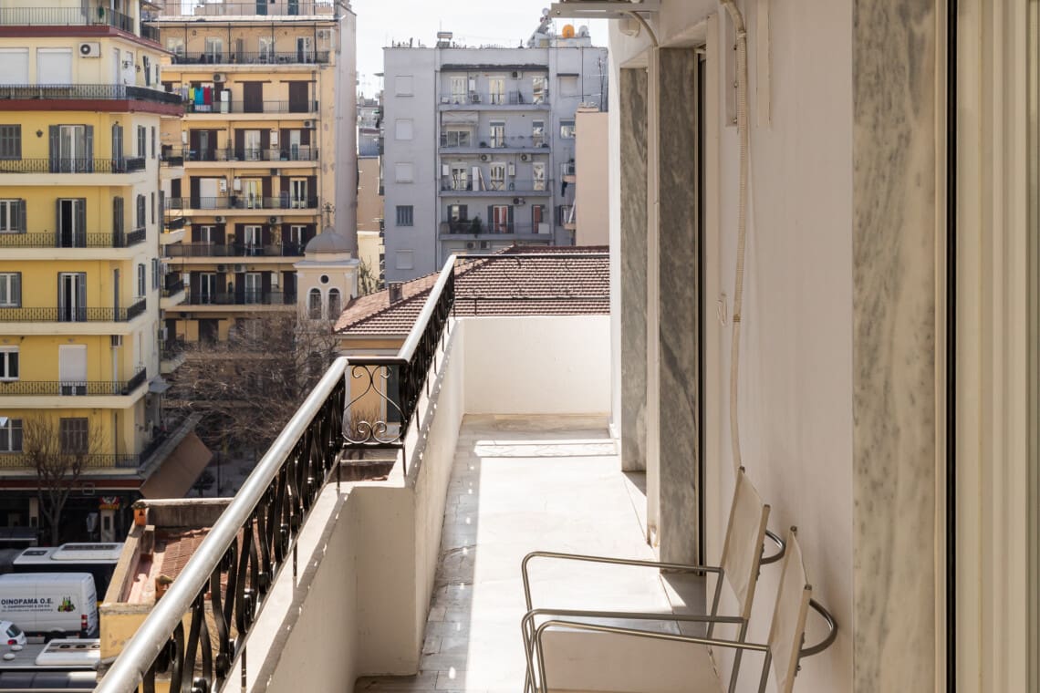 Το σαλόνι είναι διακοσμημένο με γούστο, με άνετα καθίσματα όπου μπορείτε να χαλαρώσετε και να ξεκουραστείτε. Είναι το τέλειο μέρος για να κουλουριαστείτε με ένα καλό βιβλίο ή να παρακολουθήσετε τις αγαπημένες σας εκπομπές. Το άφθονο φυσικό φως που εισέρχεται από τα μεγάλα παράθυρα θα σας φτιάξει τη διάθεση και θα δημιουργήσει μια γαλήνια ατμόσφαιρα. Το σαλόνι ανοίγει σε ένα υπέροχο μπαλκόνι, όπου μπορείτε να απολαύσετε ένα φλιτζάνι καφέ απολαμβάνοντας τη θέα στο δρόμο. Είναι το ιδανικό μέρος για να ξεκινήσετε τη μέρα σας ή να χαλαρώσετε τα βράδια, παρακολουθώντας την πόλη να ζωντανεύει.