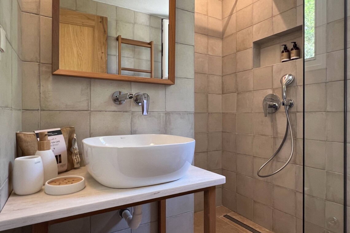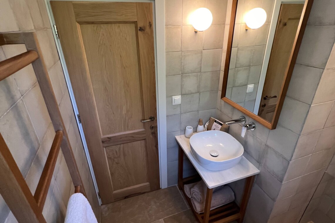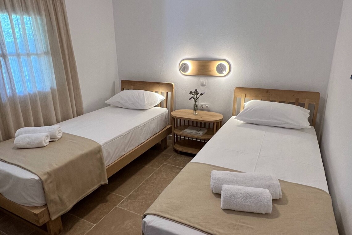 Το σπίτι διαθέτει δύο άνετα υπνοδωμάτια: το ένα με διπλό κρεβάτι και απαλό φωτισμό, και το άλλο με δύο ημίδιπλα κρεβάτια, και τα δύο με επαρκείς αποθηκευτικούς χώρους και χαλαρωτικές, ουδέτερες αποχρώσεις που ενισχύουν την ηρεμία.