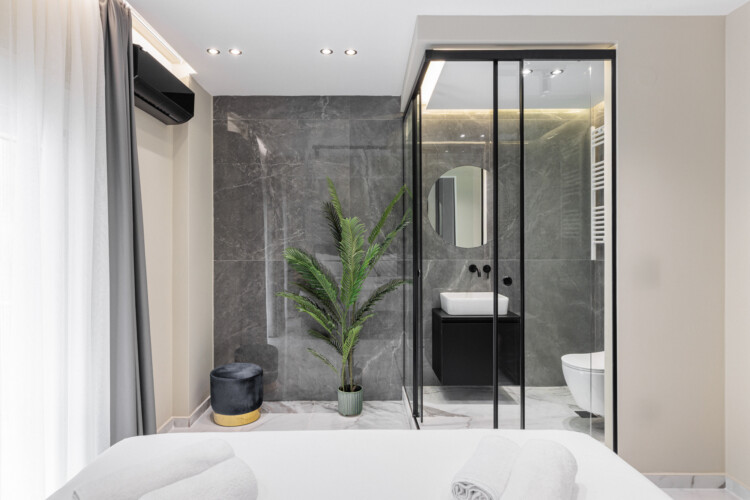 Τα δύο υπνοδωμάτια είναι διακοσμημένα με ποιοτικά λευκά είδη, άφθονο αποθηκευτικό χώρο και κλιματισμό σε κάθε δωμάτιο. Το ένα υπνοδωμάτιο διαθέτει en-suite μπάνιο, ενώ το master μπάνιο προσφέρει καινοτόμο έξυπνο γυαλί ιδιωτικότητας για μια πινελιά πολυτέλειας. Πλυντήριο ρούχων και γρήγορο Wi-Fi κάνουν τη διαμονή σας ακόμα πιο άνετη, ακόμη και για μεγαλύτερες περιόδους.