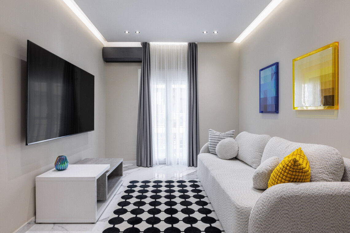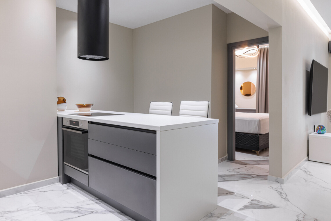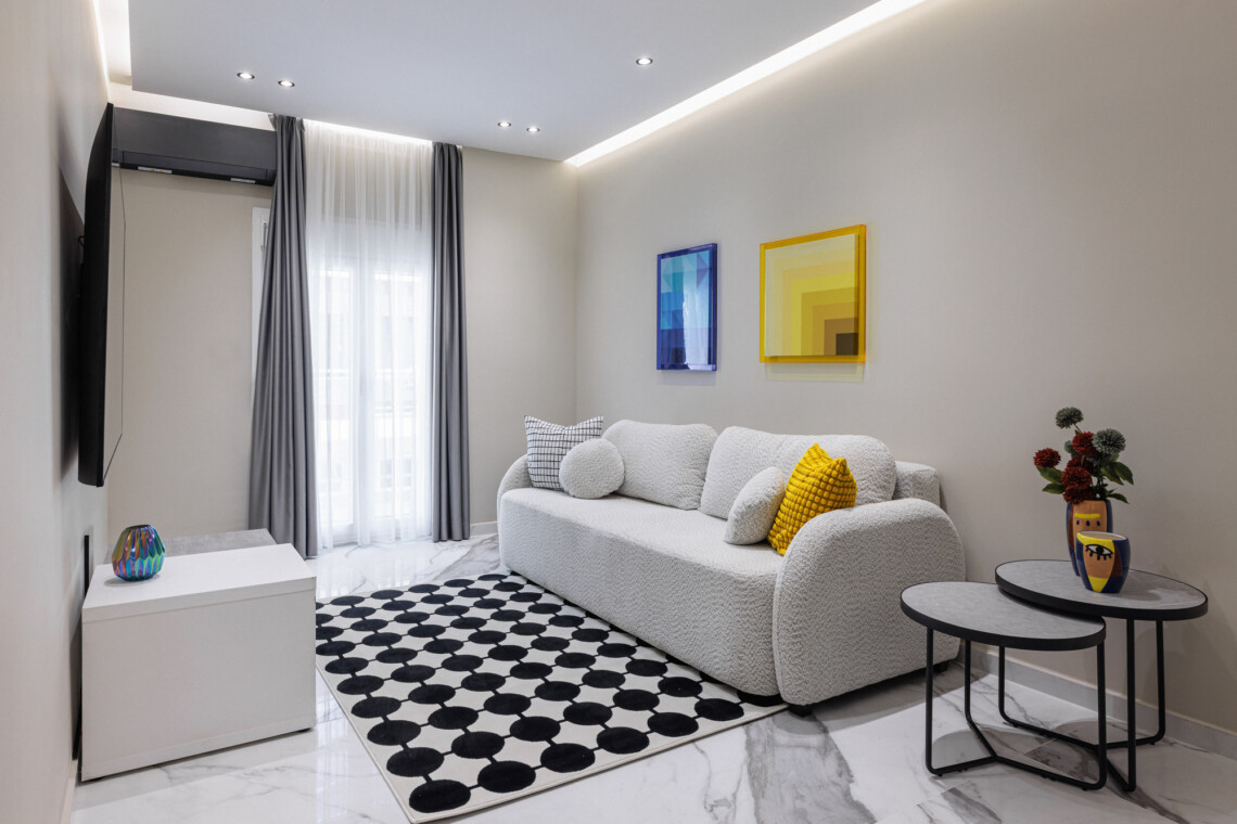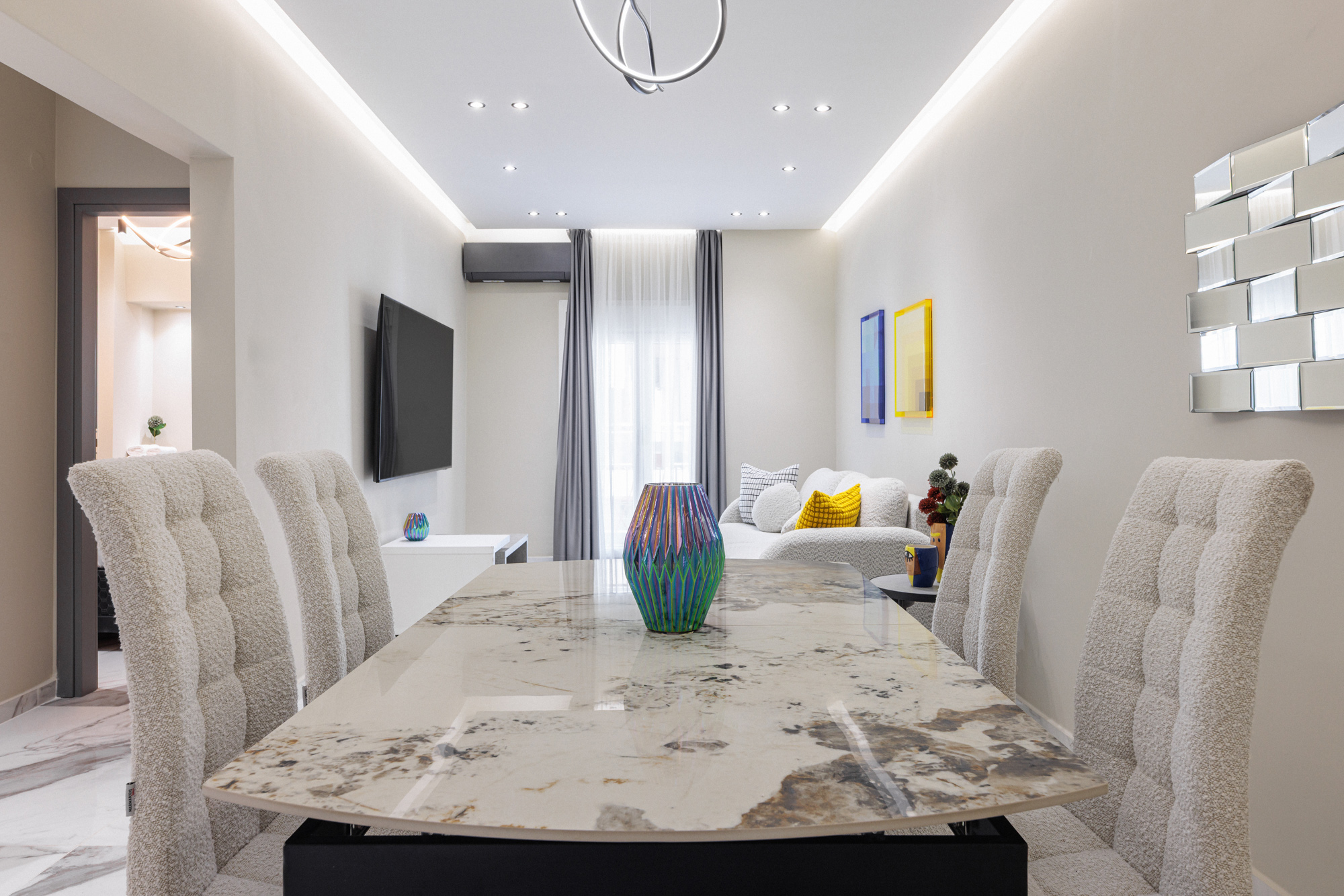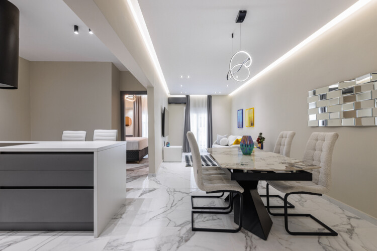 Το Vesper Martini είναι ένα ευρύχωρο διαμέρισμα 80m², σχεδιασμένο για επισκέπτες που εκτιμούν το στυλ και την ευελιξία. Ο ενιαίος χώρος καθιστικού διαθέτει άνετο καναπέ που μετατρέπεται σε κρεβάτι για έναν επιπλέον επισκέπτη, κομψή τραπεζαρία και Smart TV 65 ιντσών για βραδιές ταινιών ή τις αγαπημένες σας σειρές. Η πλήρως εξοπλισμένη κουζίνα περιλαμβάνει φούρνο, πλυντήριο πιάτων, μηχανή espresso και όλα τα απαραίτητα για μαγείρεμα στο σπίτι.