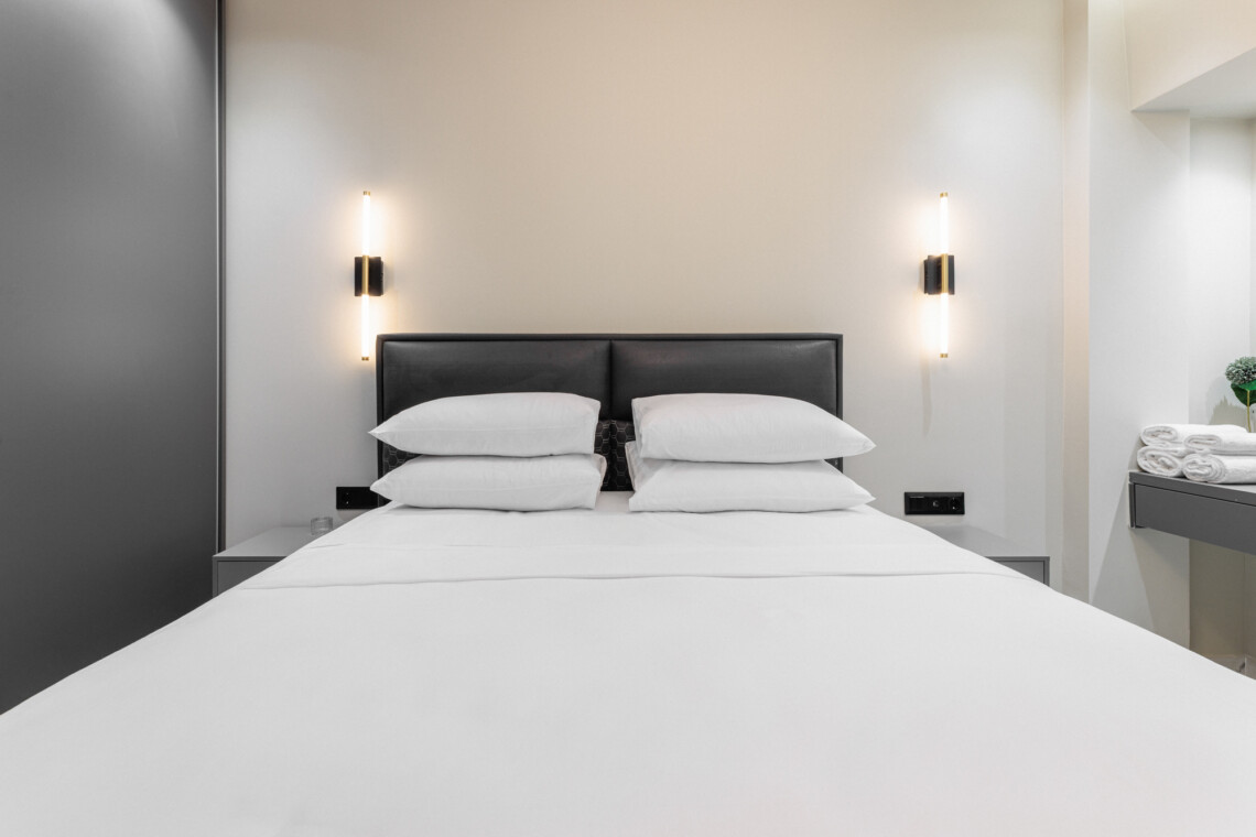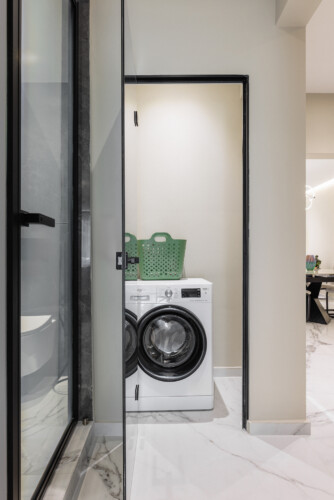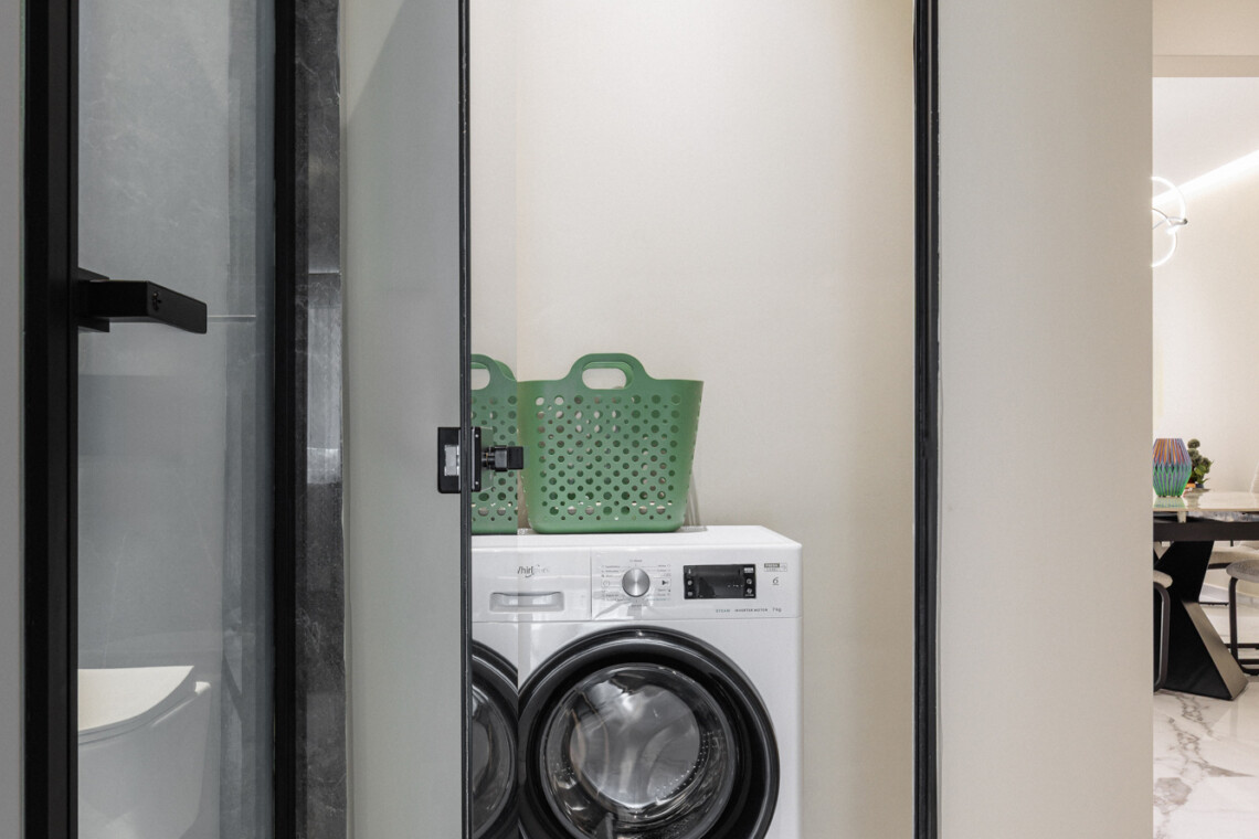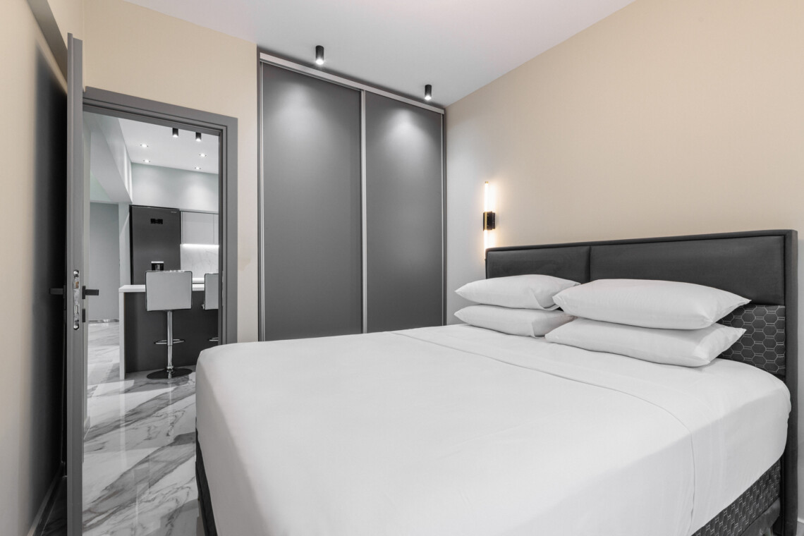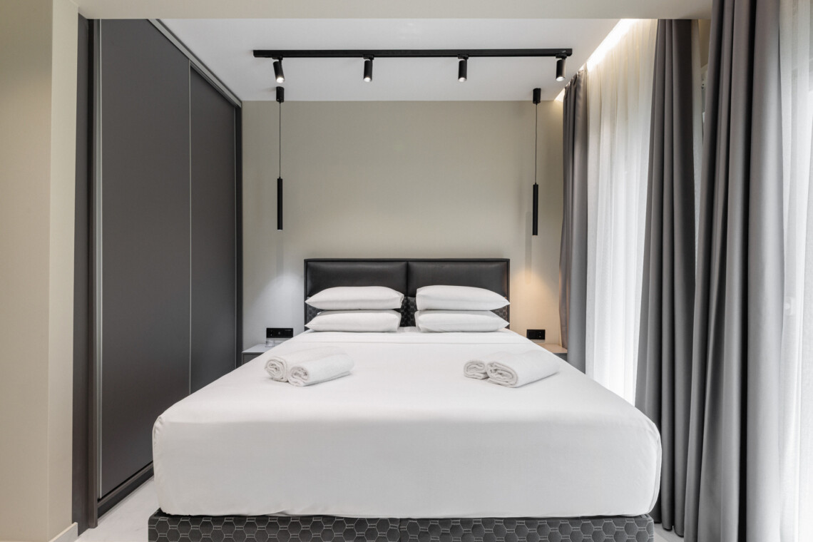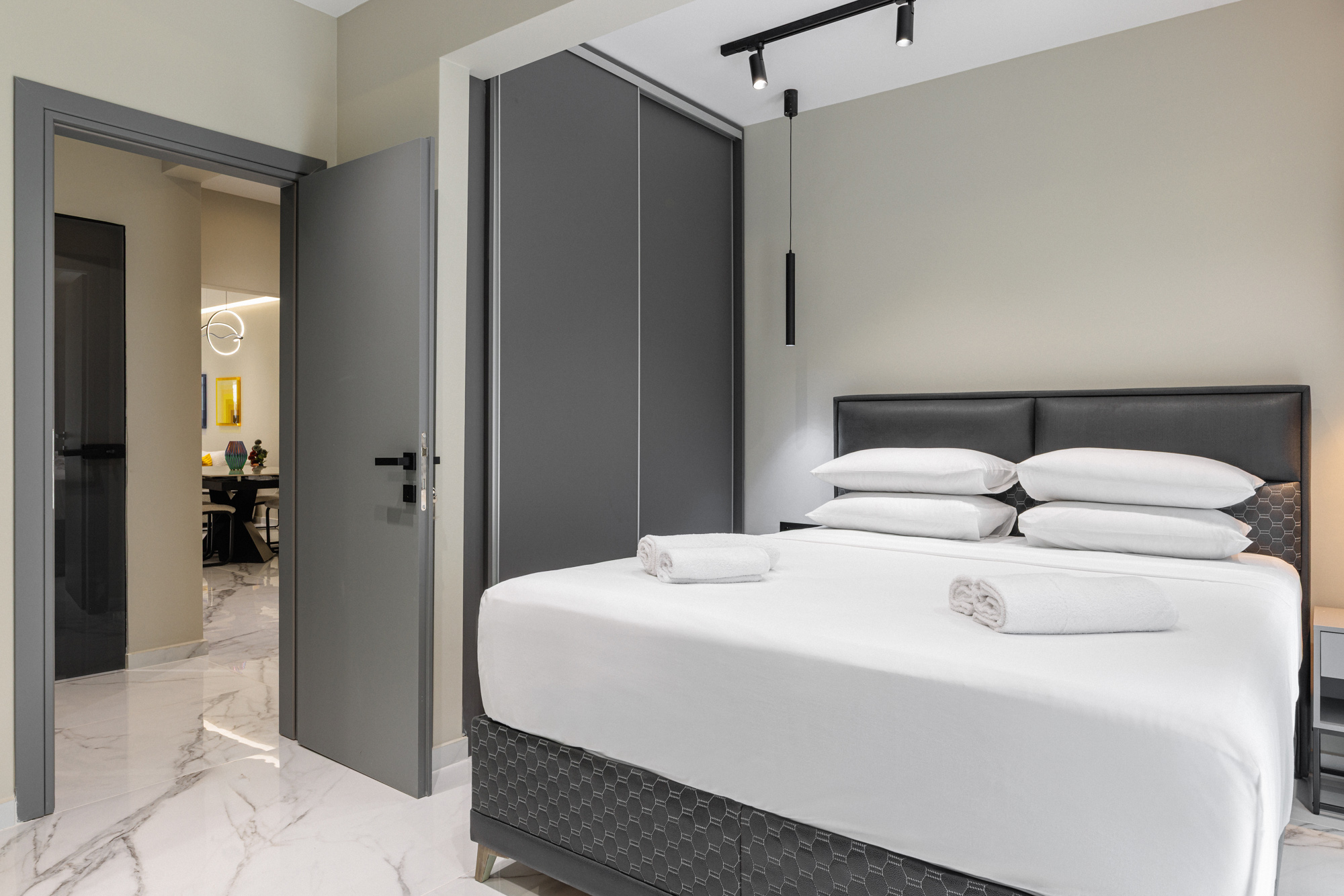 Τα δύο υπνοδωμάτια είναι διακοσμημένα με ποιοτικά λευκά είδη, άφθονο αποθηκευτικό χώρο και κλιματισμό σε κάθε δωμάτιο. Το ένα υπνοδωμάτιο διαθέτει en-suite μπάνιο, ενώ το master μπάνιο προσφέρει καινοτόμο έξυπνο γυαλί ιδιωτικότητας για μια πινελιά πολυτέλειας. Πλυντήριο ρούχων και γρήγορο Wi-Fi κάνουν τη διαμονή σας ακόμα πιο άνετη, ακόμη και για μεγαλύτερες περιόδους.