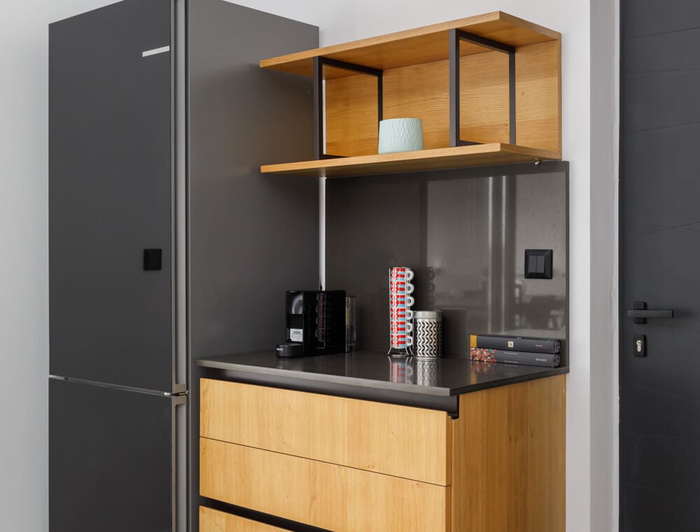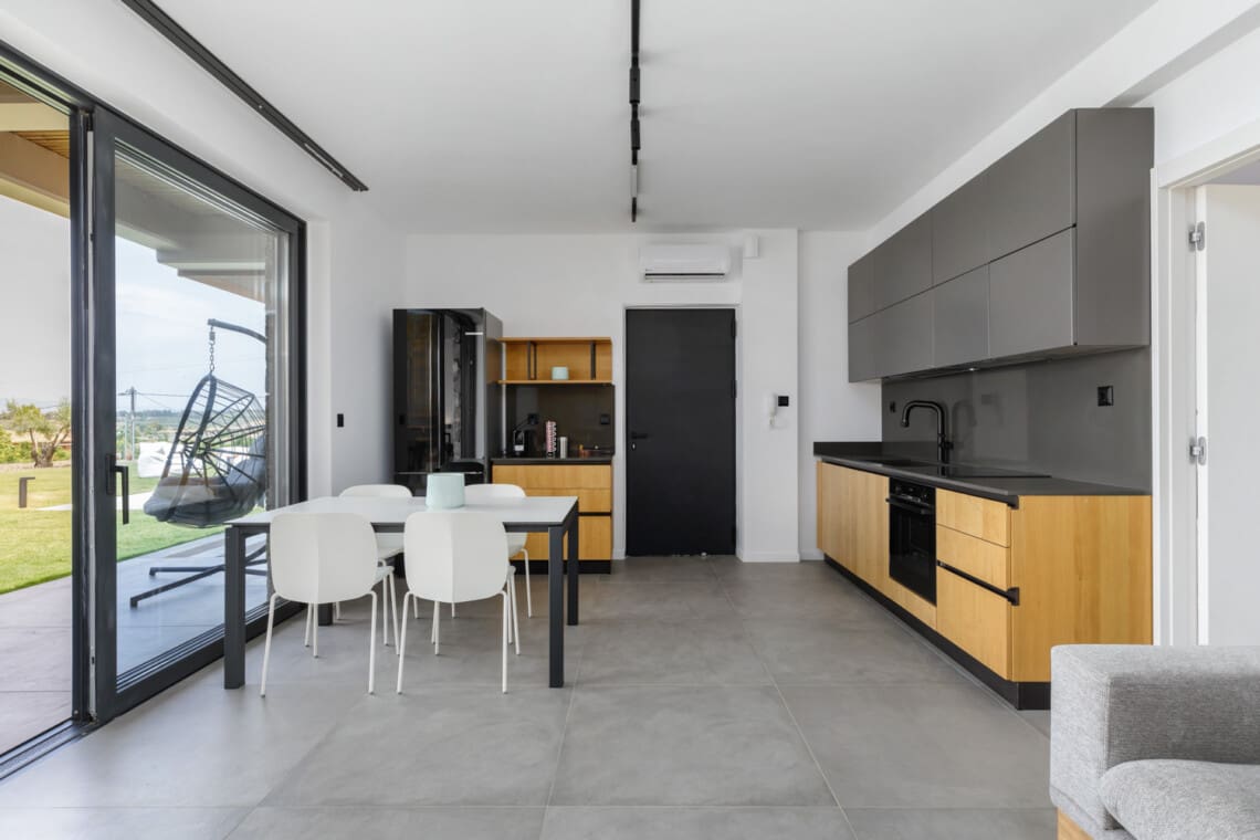 Η βίλα διαθέτει μοντέρνα κουζίνα, πλήρως εξοπλισμένη με όλα τα απαραίτητα που χρειάζεστε για να ετοιμάσετε υπέροχα γεύματα. Ανοίγει σε τραπεζαρία, καθιστώντας εύκολη την απόλαυση σπιτικών πιάτων με τα αγαπημένα σας πρόσωπα.