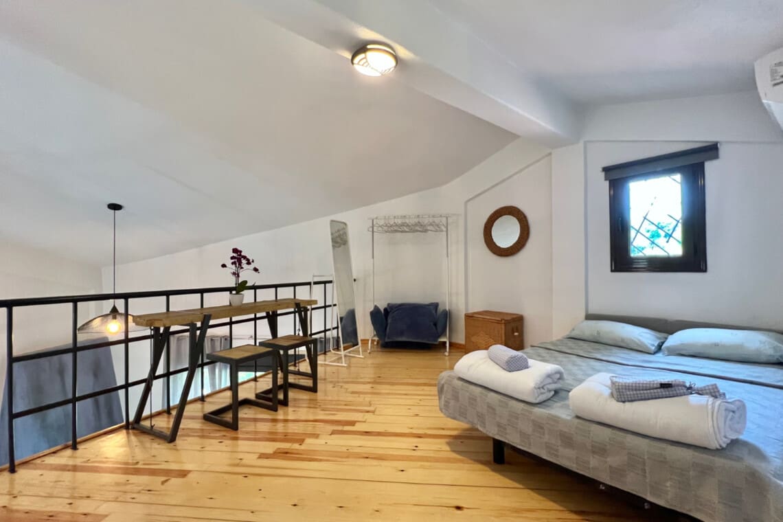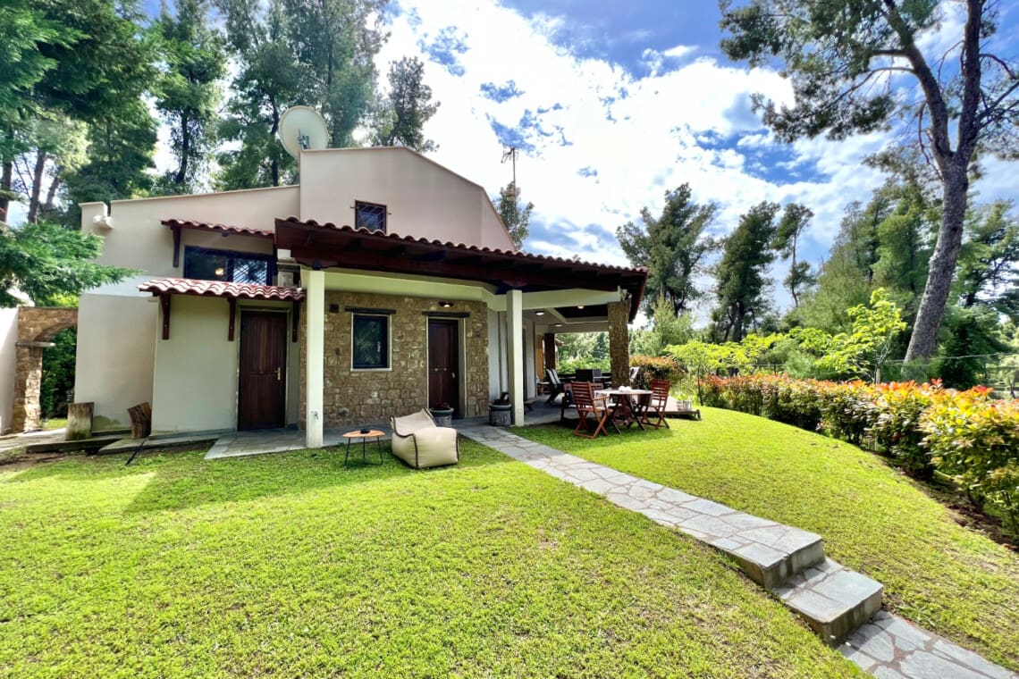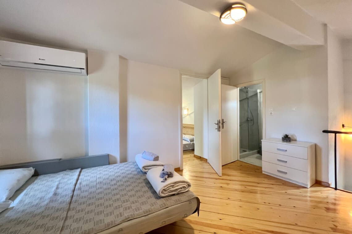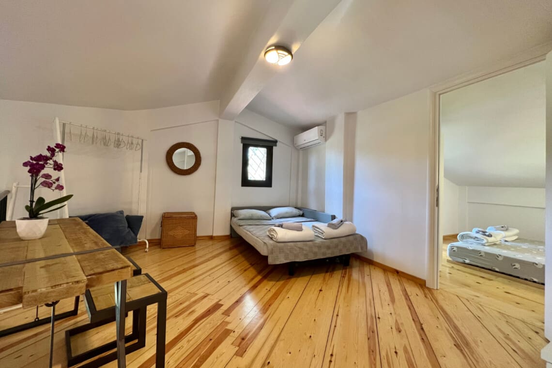 Nestled in the heart of the stunning Sani, Halkidiki, our villa promises a getaway that combines comfort, luxury, and the beauty of Greece, perfect for families and small groups looking for an unforgettable escape. Our relaxing villa features 2 cozy bedrooms, with the first boasting a comfortable double bed for a peaceful night’s sleep, and the second offering welcoming twin beds ideal for siblings or friends.