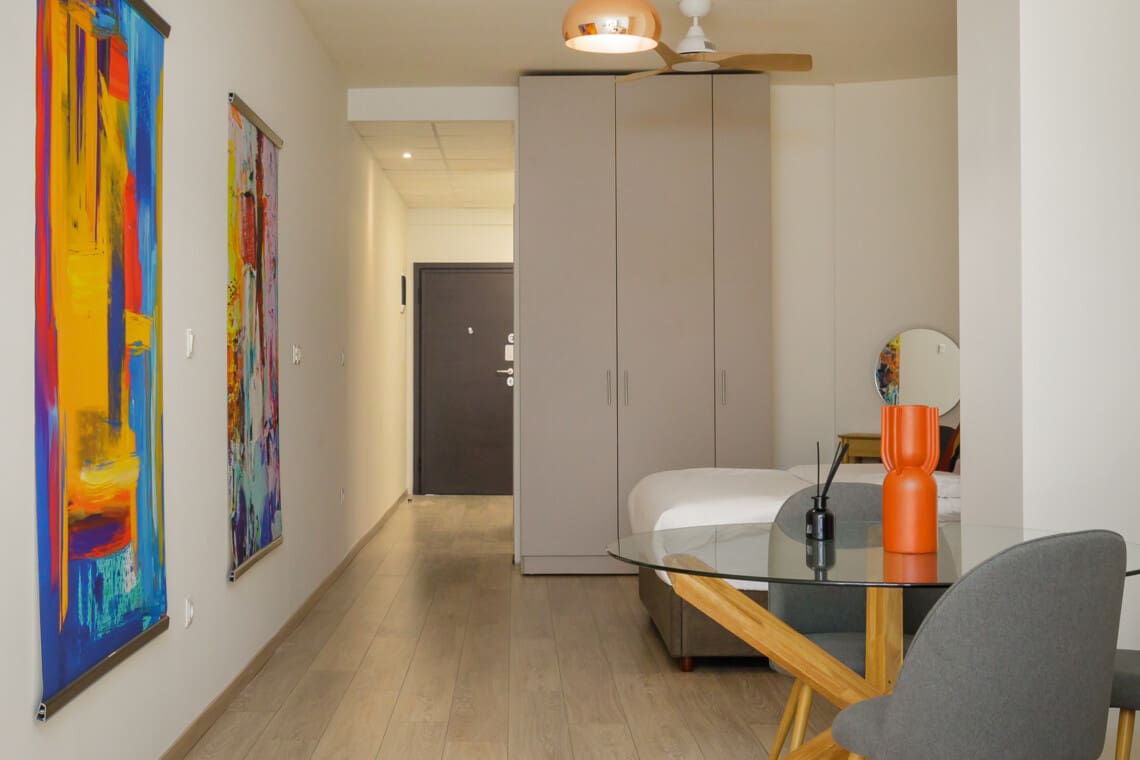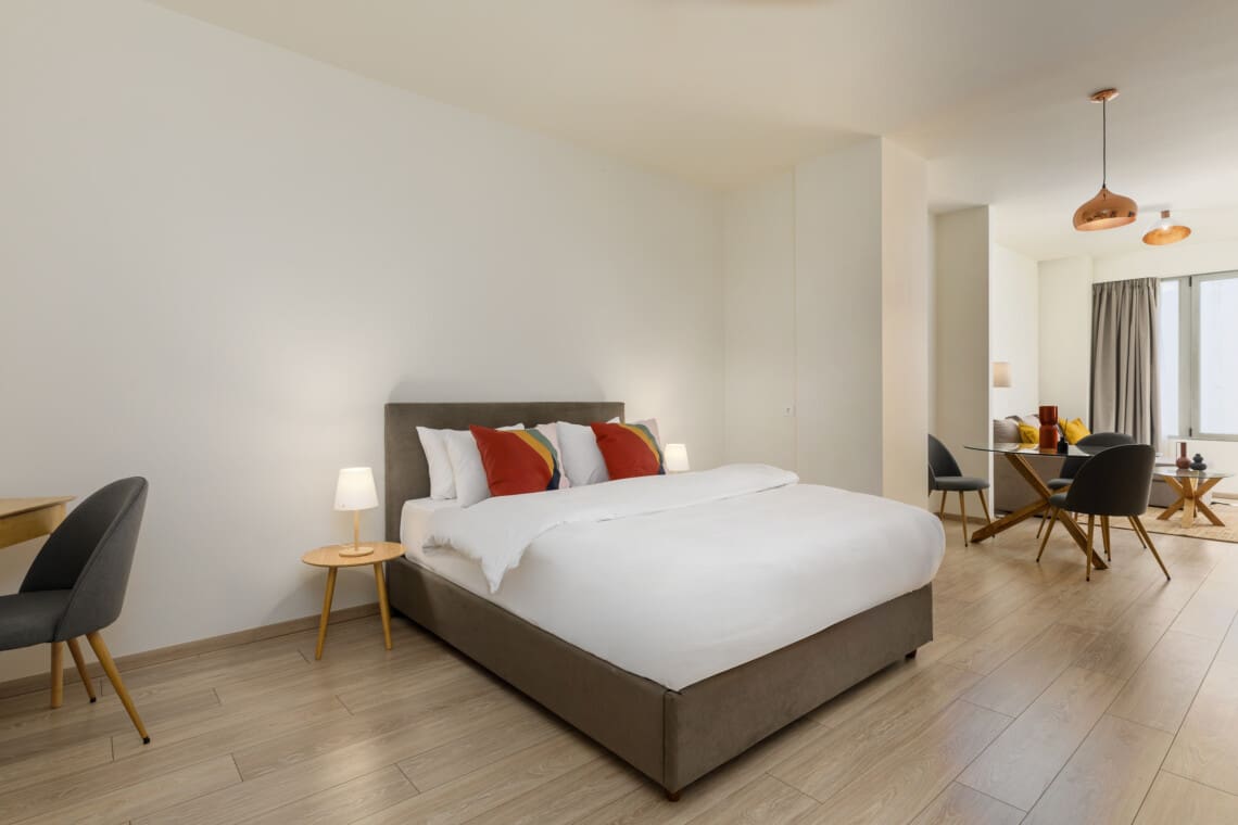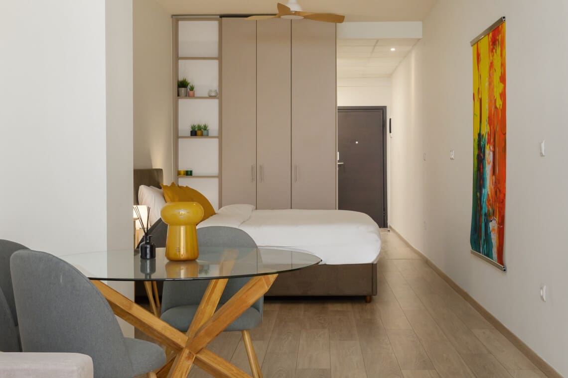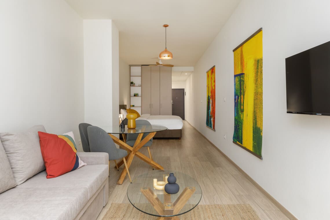 Το διαμέρισμά μας είναι γοητευτικό και πλήρως εξοπλισμένο για να καλύψει όλες τις ανάγκες σας. Διαθέτει ένα χαλαρωτικό υπνοδωμάτιο με ένα άνετο διπλό κρεβάτι, που εξασφαλίζει έναν καλό βραδινό ύπνο. Το σαλόνι είναι ευρύχωρο, προσφέροντας ένα τέλειο μέρος για να χαλαρώσετε και να χαλαρώσετε μετά από μια μέρα εξερεύνησης της πόλης.