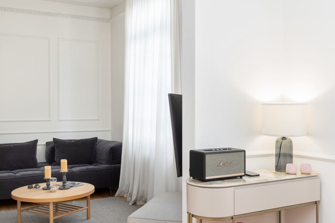 Καλώς ήρθατε στο νεοκλασικό μας διαμέρισμα που βρίσκεται στην καρδιά του κέντρου της Θεσσαλονίκης! Καθώς μπαίνετε μέσα, σας υποδέχεται η διαχρονική κομψότητα και γοητεία του προσεκτικά σχεδιασμένου χώρου μας..