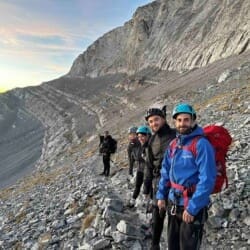 The climb to Mytikas peak at an altitude of 2918 meters will take place on Saturday afternoon or on Sunday morning depending on the weather conditions and the mood of the team. The ascent will be done with the use of appropriate climbing safety equipment (helmet, climbing zone, rope) and the help of experienced guides and climbing instructors. The ascent to the top will take about 3 hours.