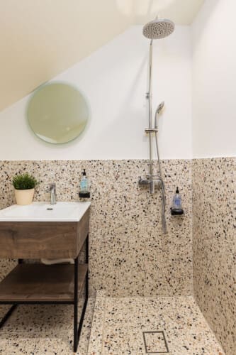 The fully equipped kitchen is ready to meet all your cooking needs, complete with a stovetop, refrigerator, oven, and all the necessary kitchenware. Whether you’re preparing a quick breakfast or a full dinner, you’ll have everything you need at your fingertips. The bathroom is clean and modern, featuring a refreshing shower and complimentary toiletries to make your stay even more convenient.